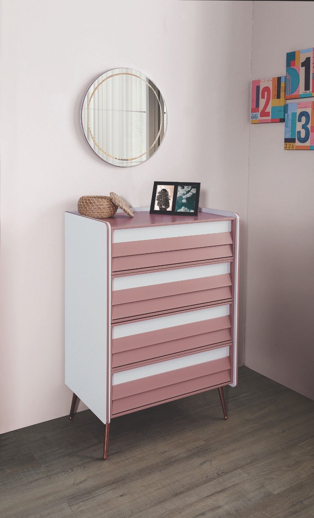 Rose Kommode für Kinder in Rosa / Weiß