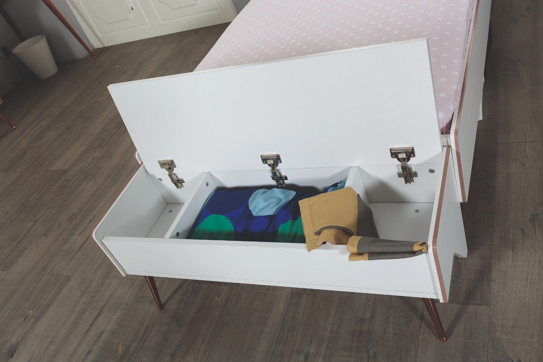 Rose Sitzbank mit Stauraum für Kinder in Rosa / Weiß