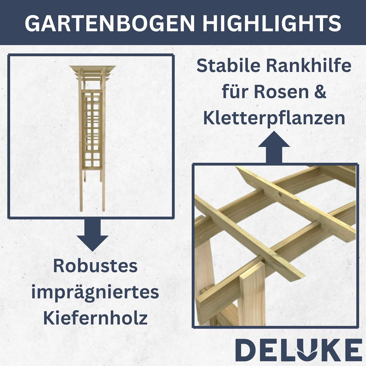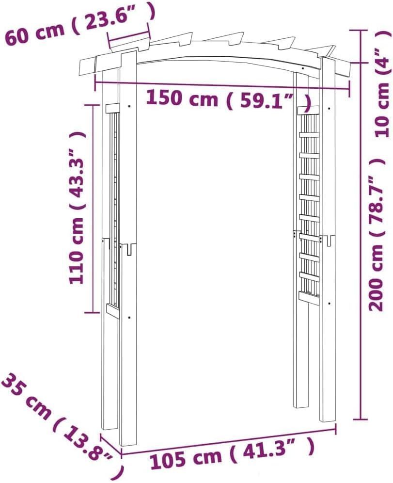 Rosenbogen Holz VERSIL 150x60x210cm Gartenbogen Torbogen Pergola Rankhilfe für