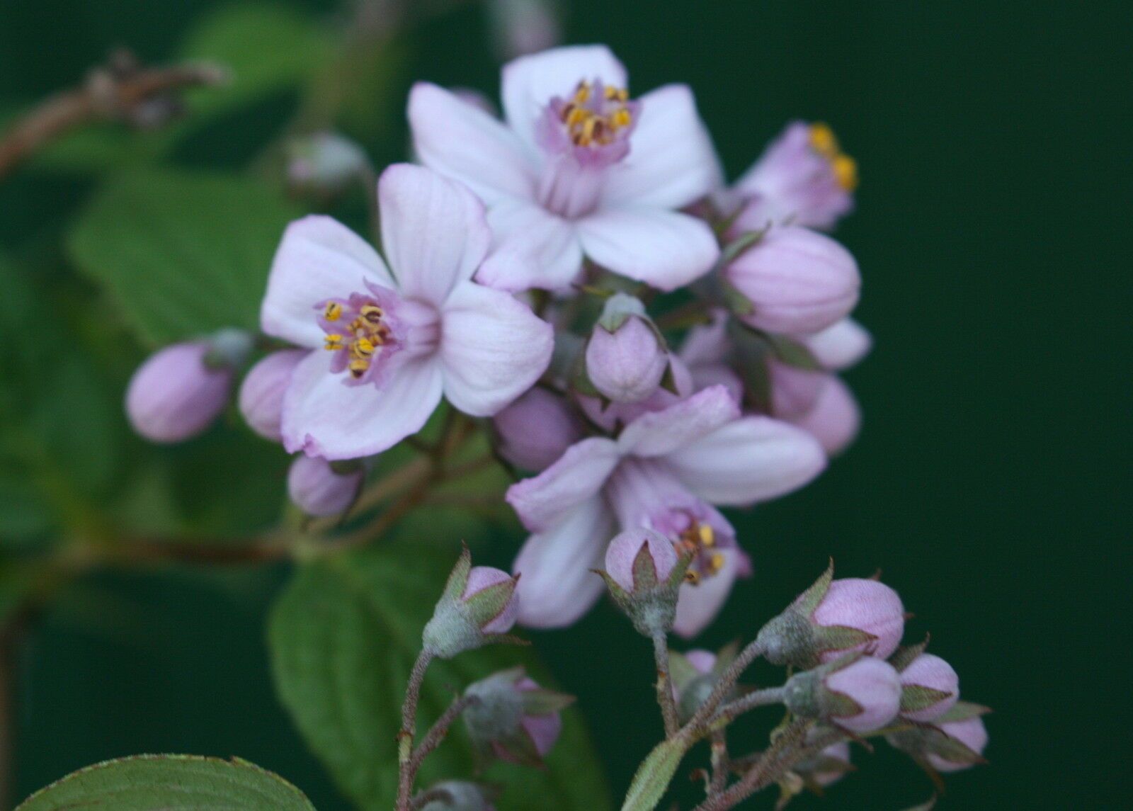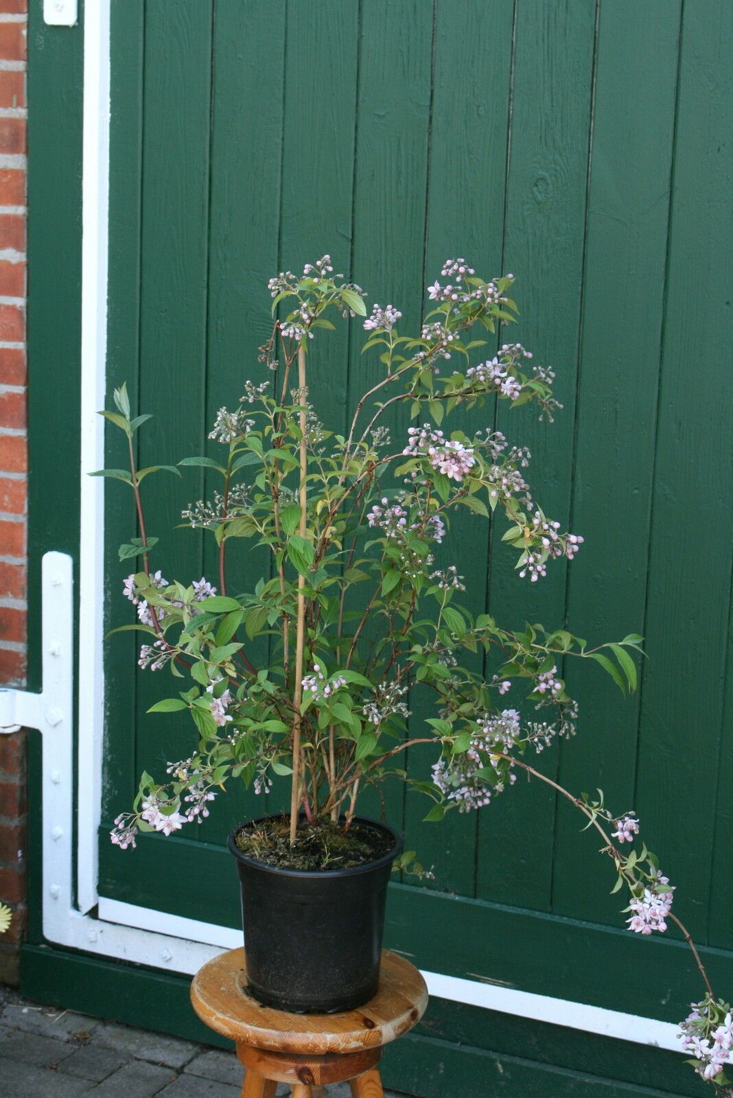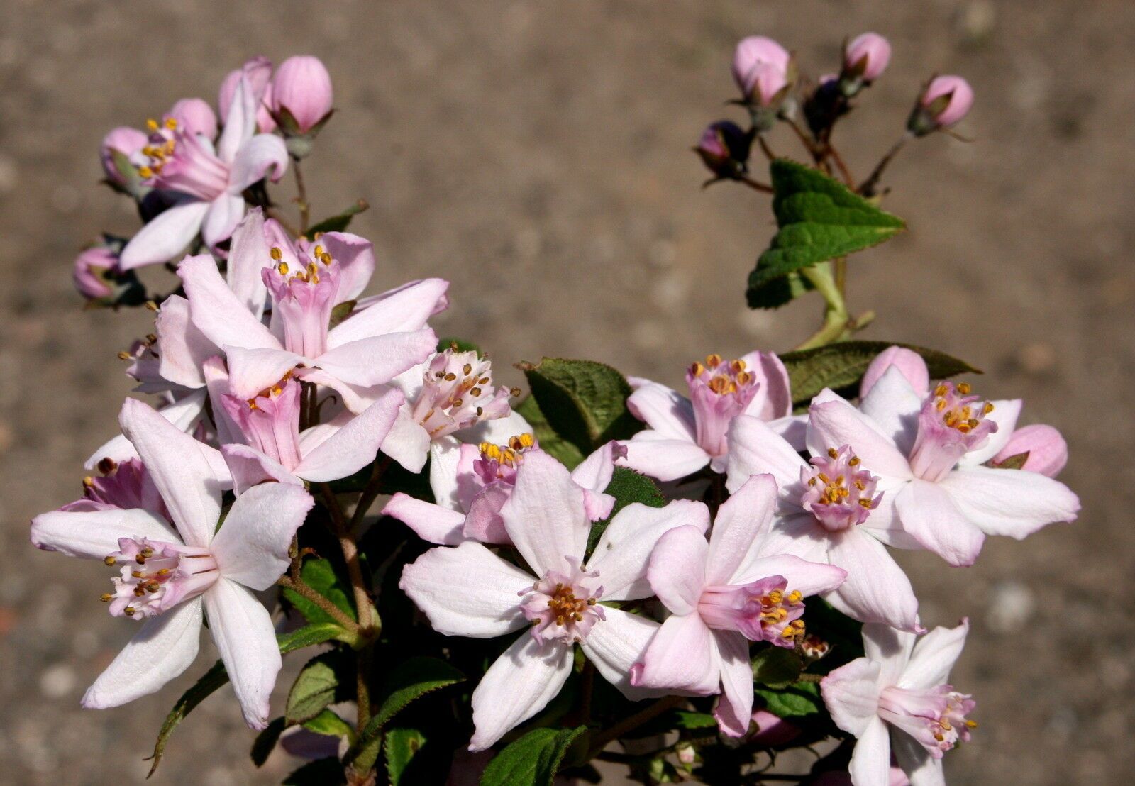 Rosendeutzie Deutzia hybrida 'Mont Rose' Die Rosen-Deutzie ist ein sehr stilvoller Blütenstrauch. Sie wächst als mittelhoher Strauch. Ihre Einzelblüten haben eine aussdrucksstarke Ausstrahlung. Sie kann eine Höhe von ca. 1,5 Meter und eine Breite von ca. 1 Meter erreichen. In Einzelstellung ist sie