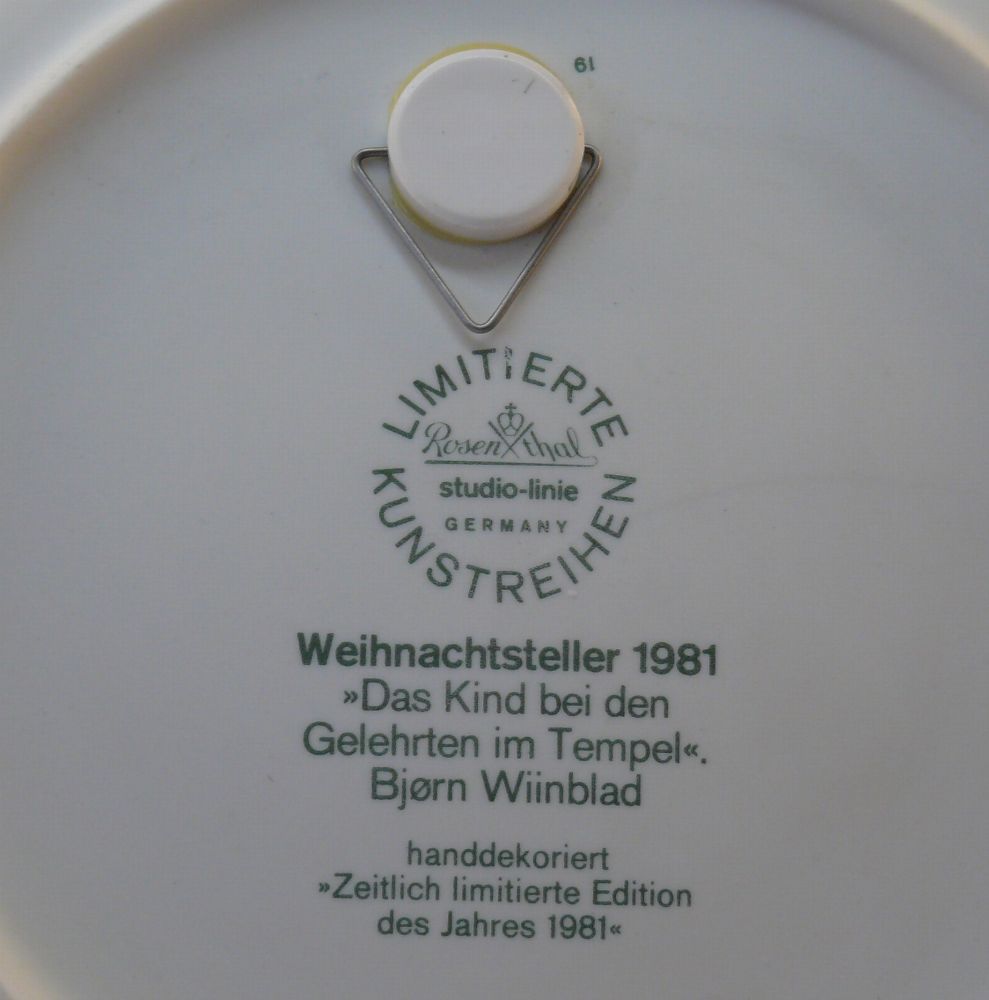 Rosenthal Studio Björn Wiinblad Weihnachtsteller 1981 Das Kind bei den gelehrten im..