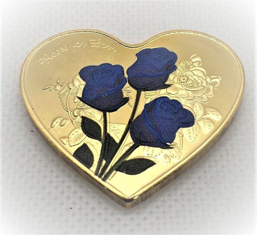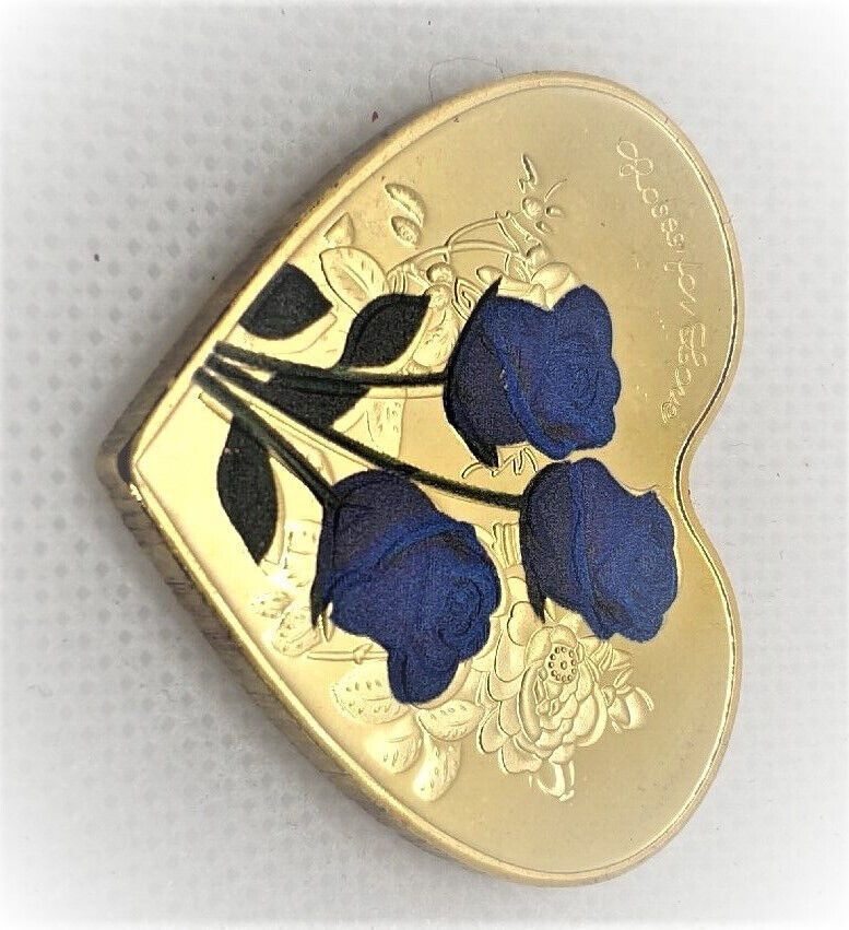 Roses for Love, Blaue Rosen, Herz Medaille - Sehr selten - vergoldet (RVL103)