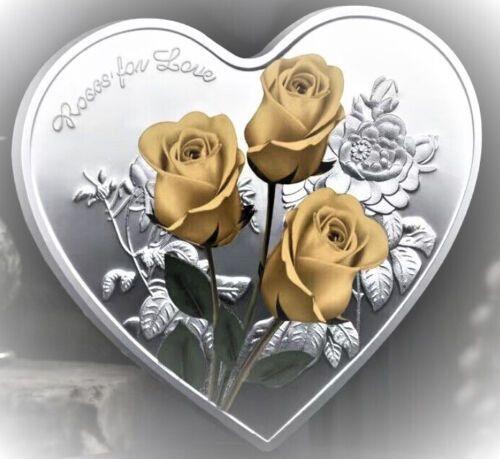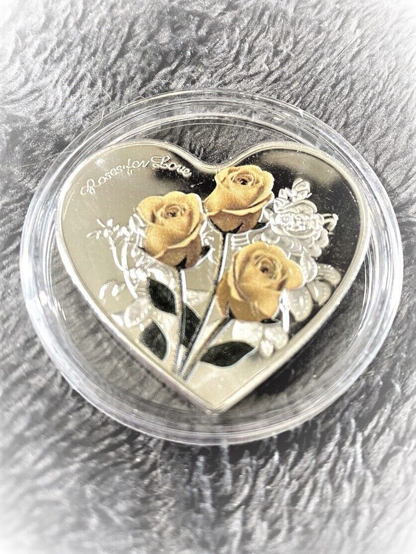 Roses for Love, Gelbe Rosen, Herz Medaille - Sehr selten - Neusilber(RVL105)