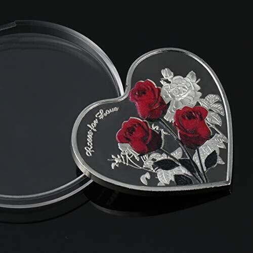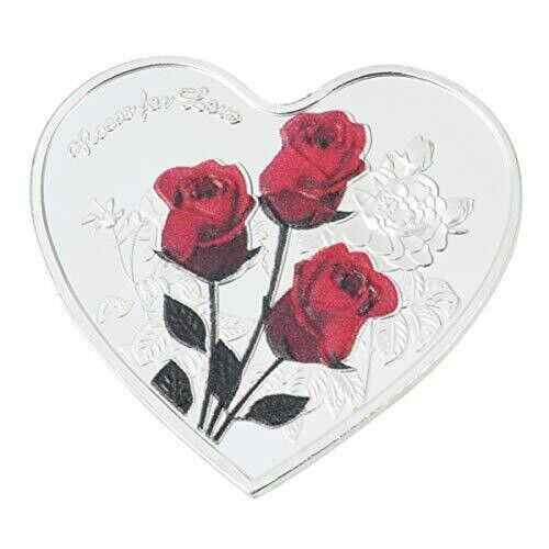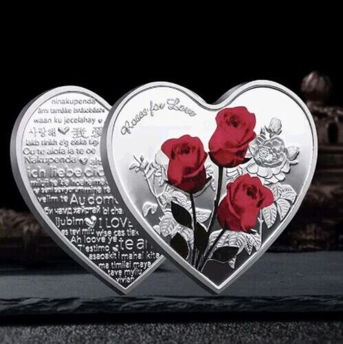 Roses for Love, Rote Rosen, Herz Medaille - Sehr selten - Neusilber (HMed100)