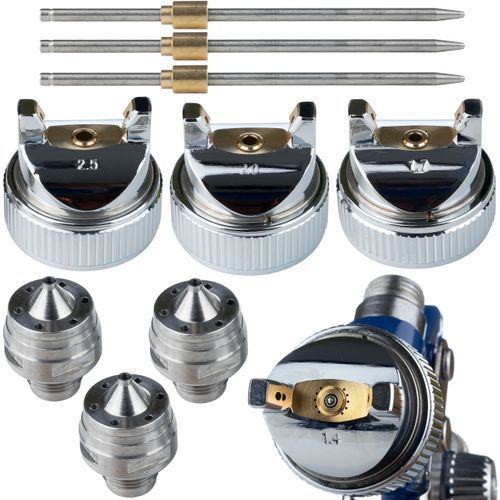 Rosfix HVLP Lackierpistole Set – 4 Düsen 1,4–2,5 mm | 600 ml, 1/4" Anschluss