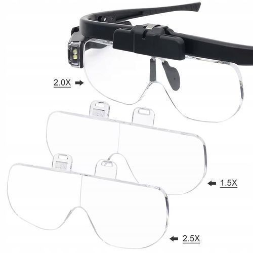 Rosfix Lupenbrille mit LED – 1.5x–4.5x Vergrößerung | USB, 3 Linsen Set