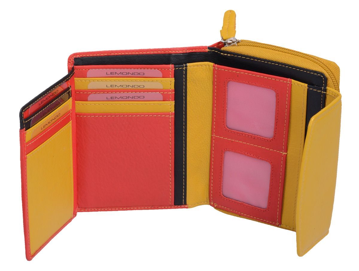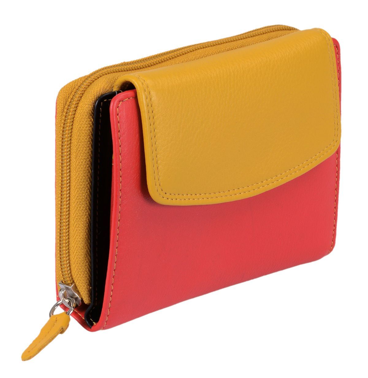 rot-gelbe Damenbörse Leder mit Reißverschluss