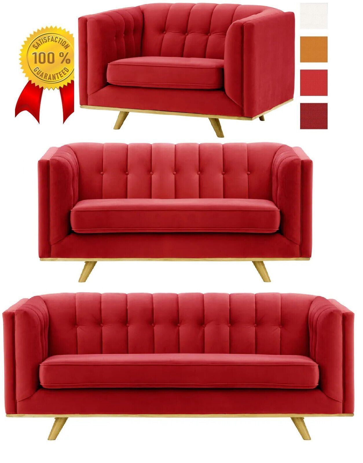 ROT RED SAMT SET 3-2-1 Sofagarnitur COUCH SESSEL 3 SITZER SOFA Wohnlandschaft