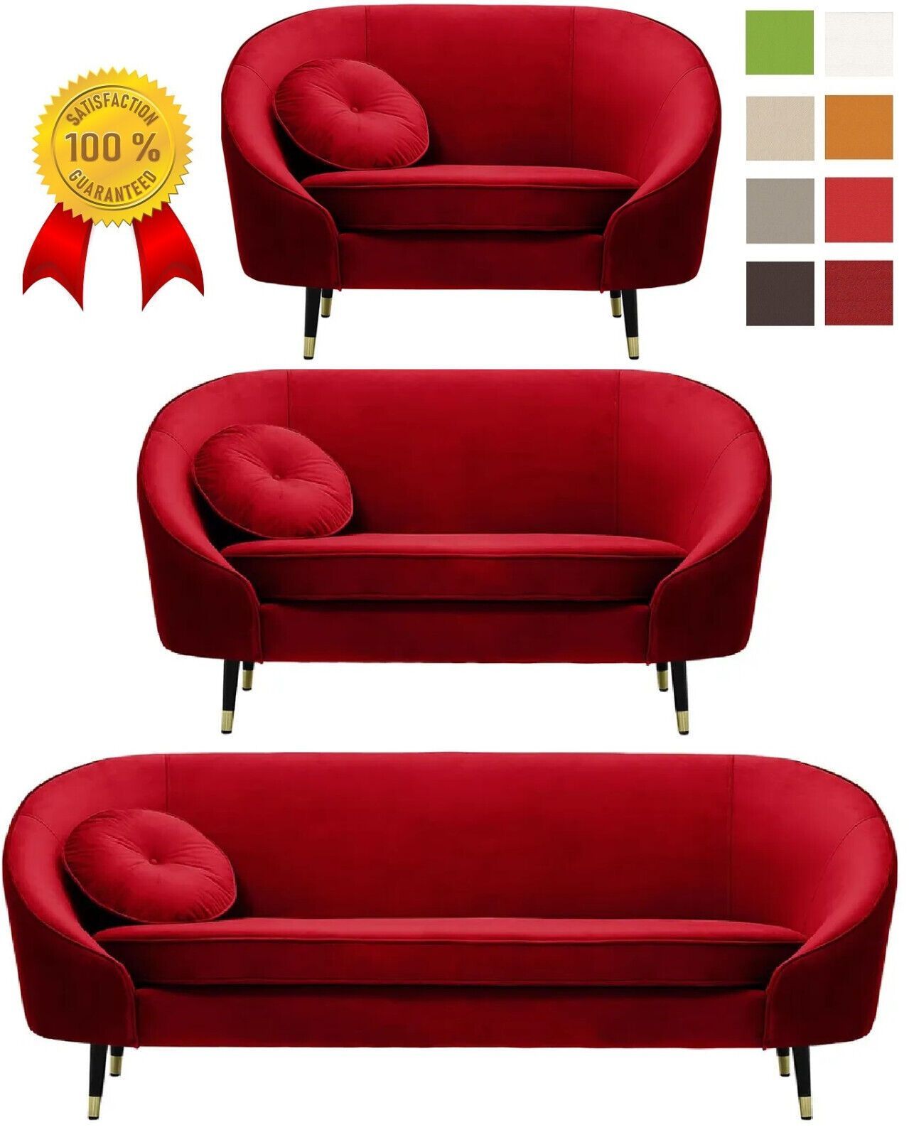ROT SAMT SET 3-2-1 Couchgarnitur SESSEL 3 SITZER SEXY SOFA Wohnlandschaft 1960