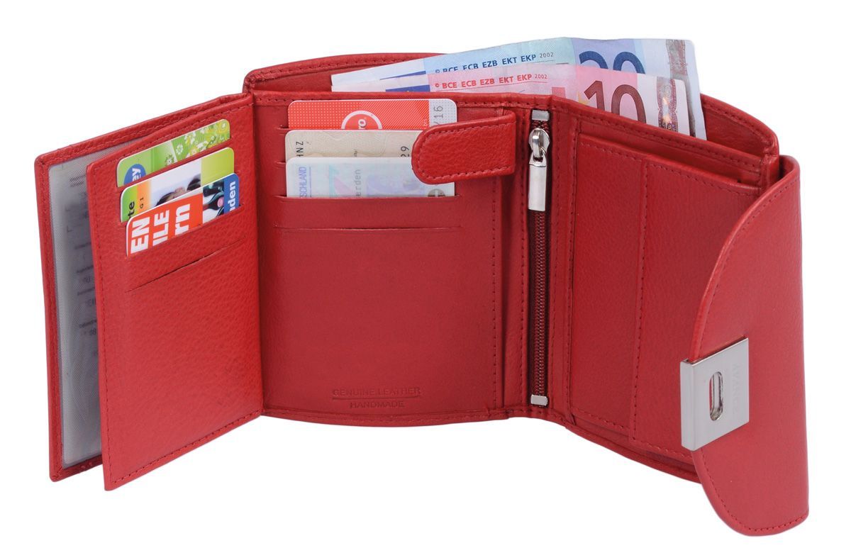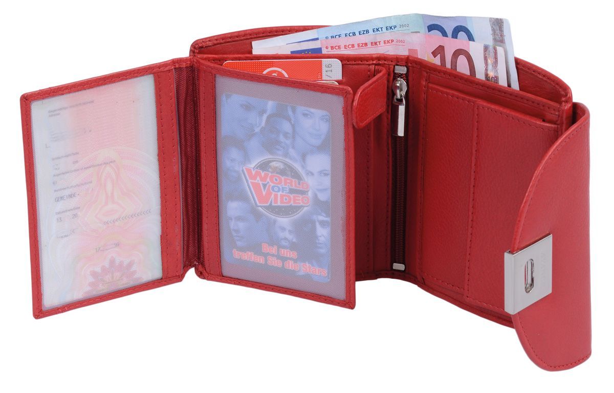 rote Lederbrieftasche mit Sicherheitsverschluss