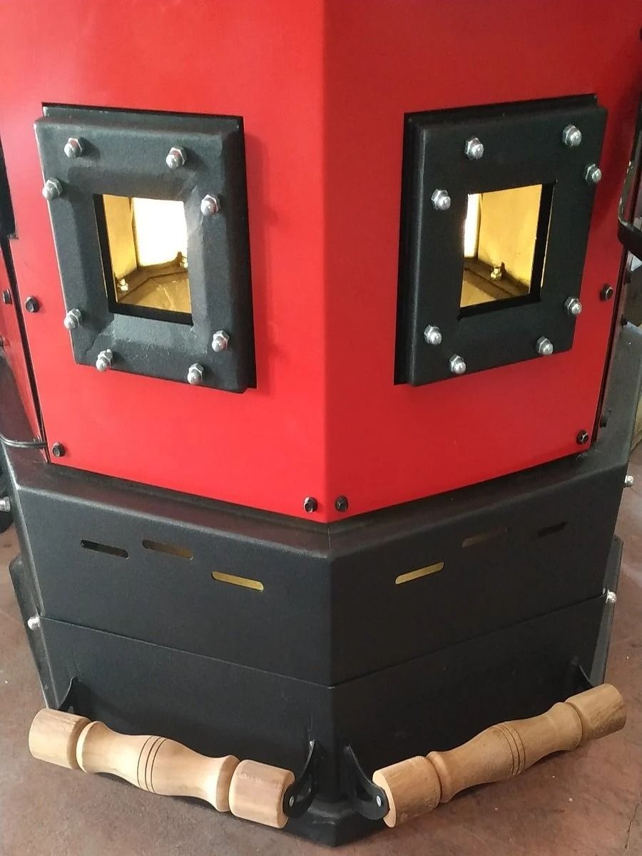 Roter Gartenofen aus Edelstahl mit Glas, stilvoll und langlebig