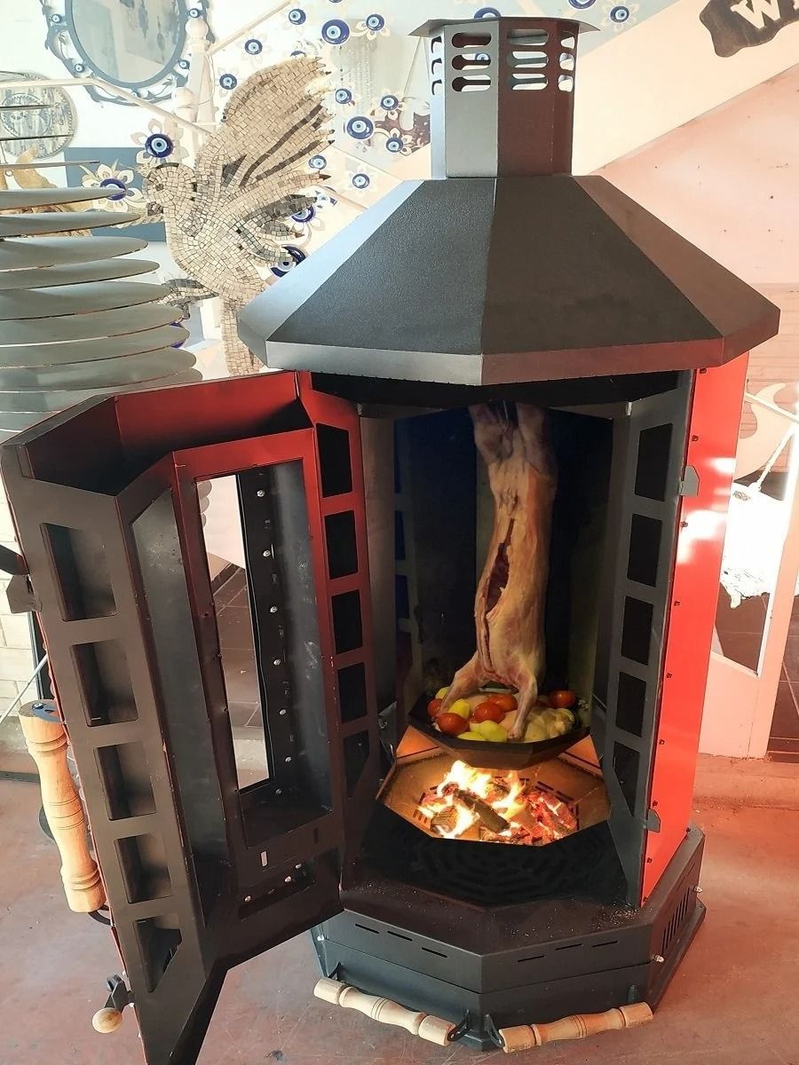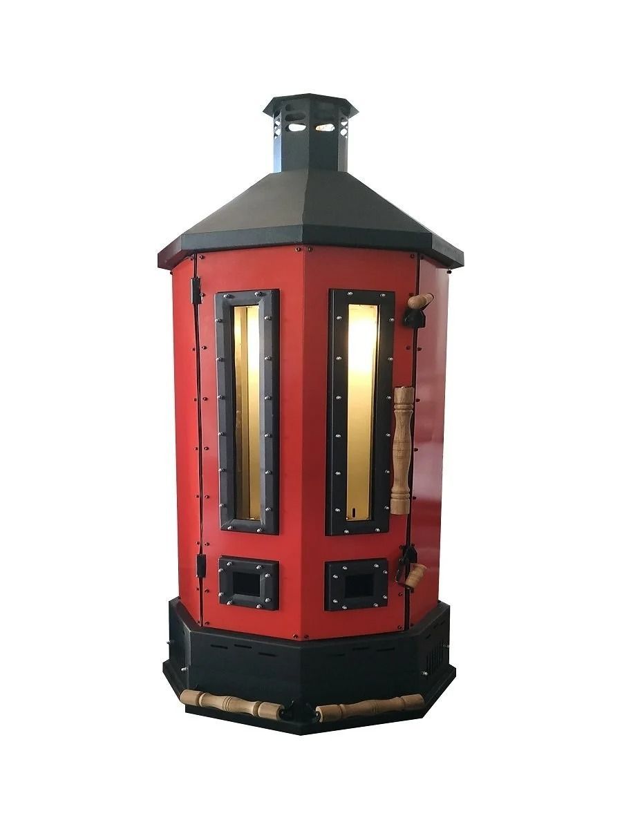 Roter Gartenofen aus Edelstahl mit Glas, stilvoll und langlebig
