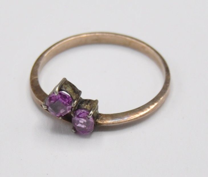 Rotgold Ring Doppel Solitär Amethyst 333 Gold Vintage