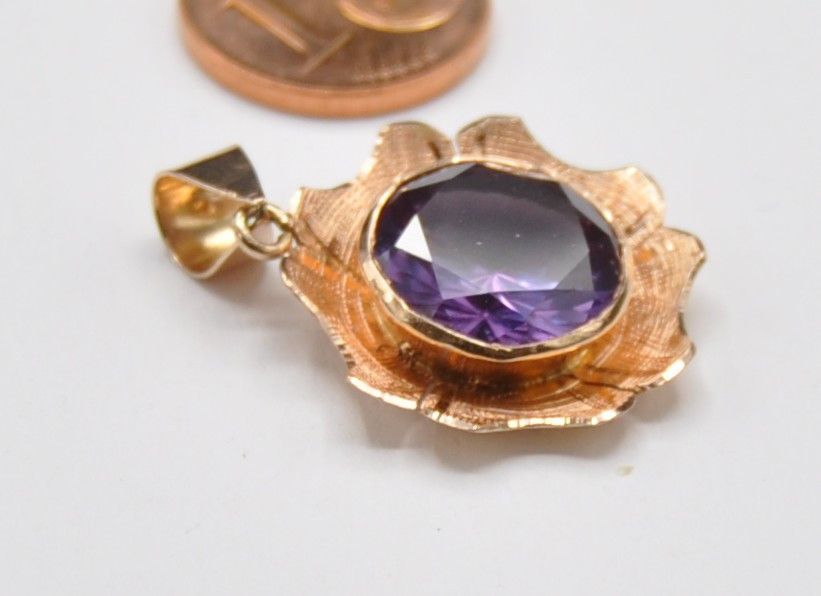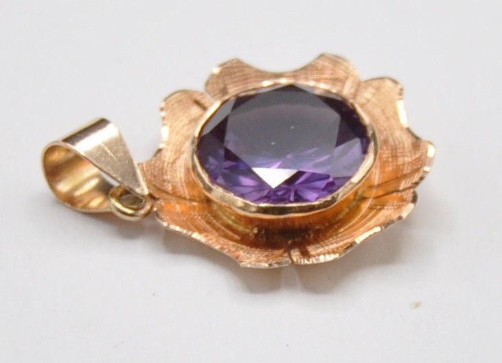 Rotgold Rosegold Amethyst Solitär Anhänger Groß 585 Gold Vintage