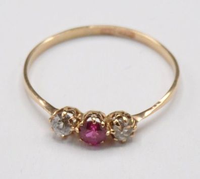Rotgold Rosegold 3 Stein Ring groß Rubin Saphir Topas 750 gold Antik