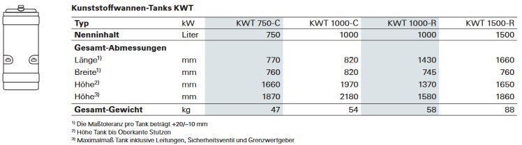 Roth Roth KWT Heizöltank Öltank Kunststoffwannen Tank Renovierungstank 750 1000 1500