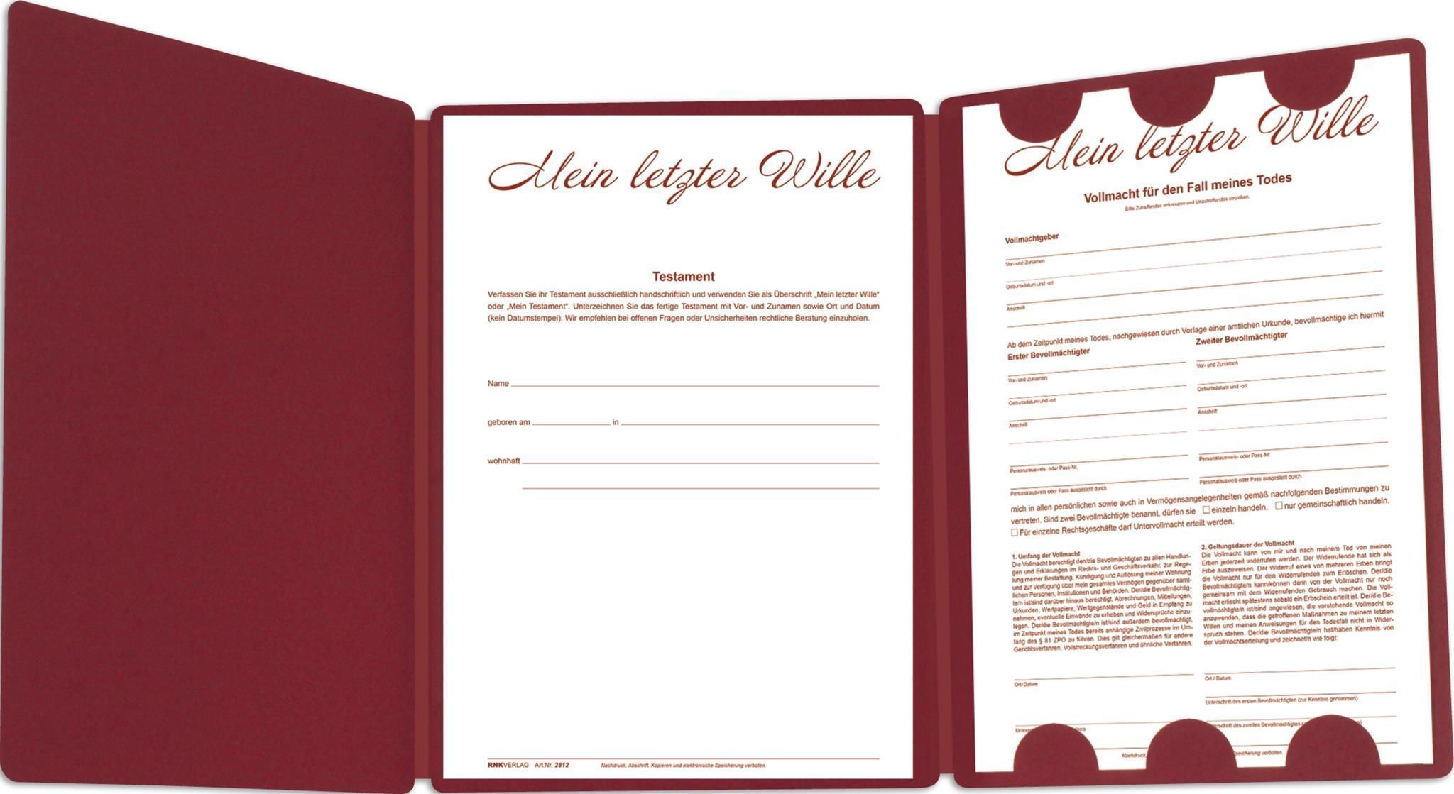 Roth Mappe "Mein letzter Wille" für 1 Person