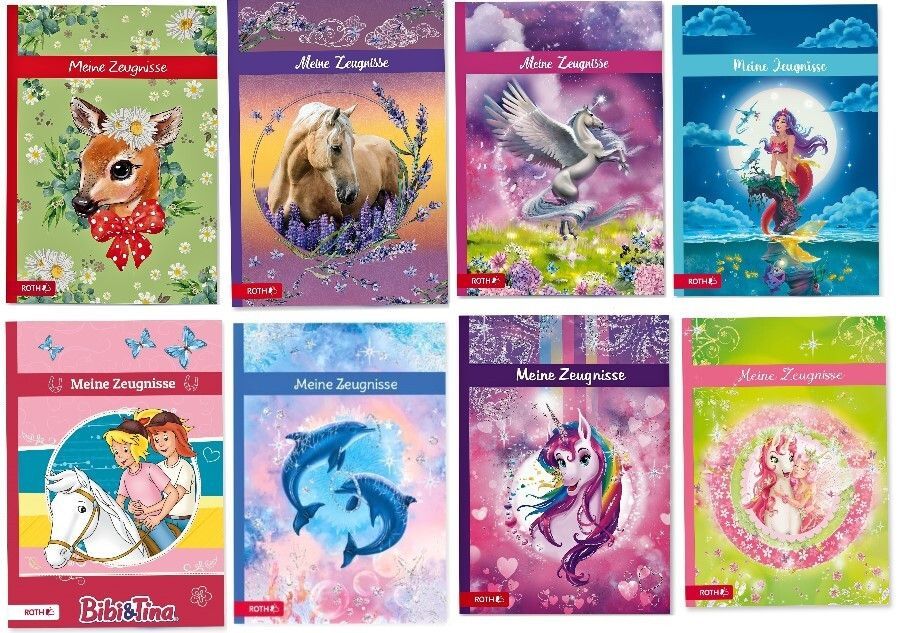 Roth Zeugnismappe Dokumentenmappe Schule Mädchen Einhorn Pferd..10 Sichthüllen