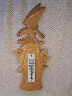 • Glas-Thermometer auf handgeschnitzter Lindenholz-Platte * * * *