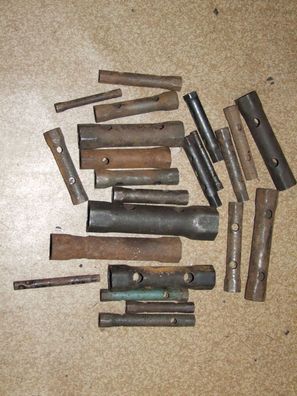 • altes werkzeug oldtimer rohrsteckschlüssel alles durcheinander der grösste ist 42