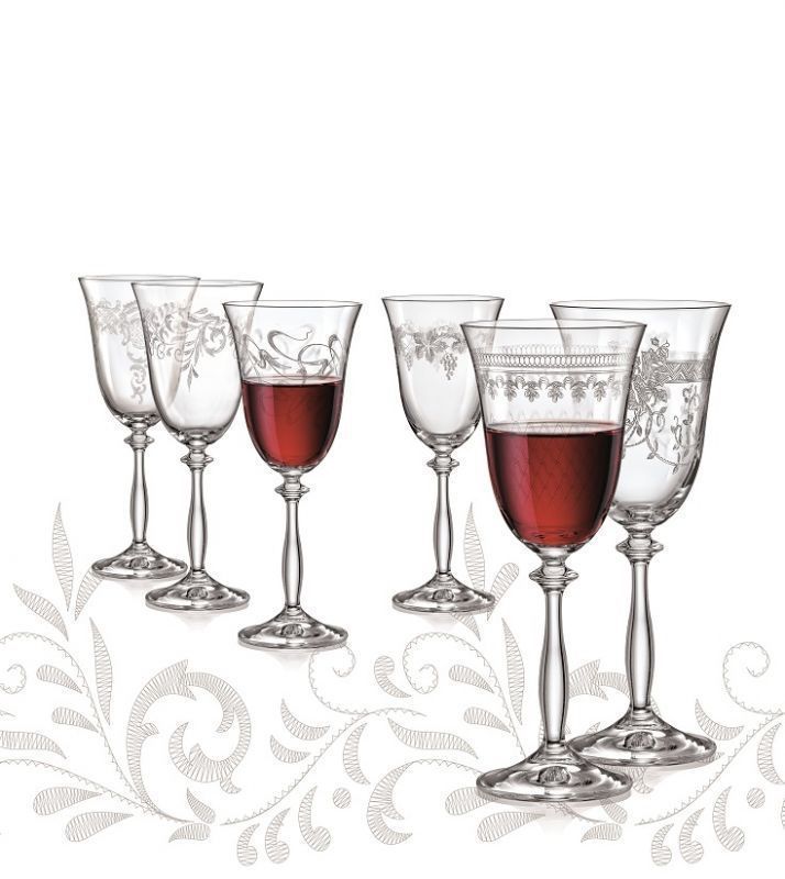 Rotweingläser Royal verschiedene Ornamenten 350 ml 6er Set Bohemia Crystalex