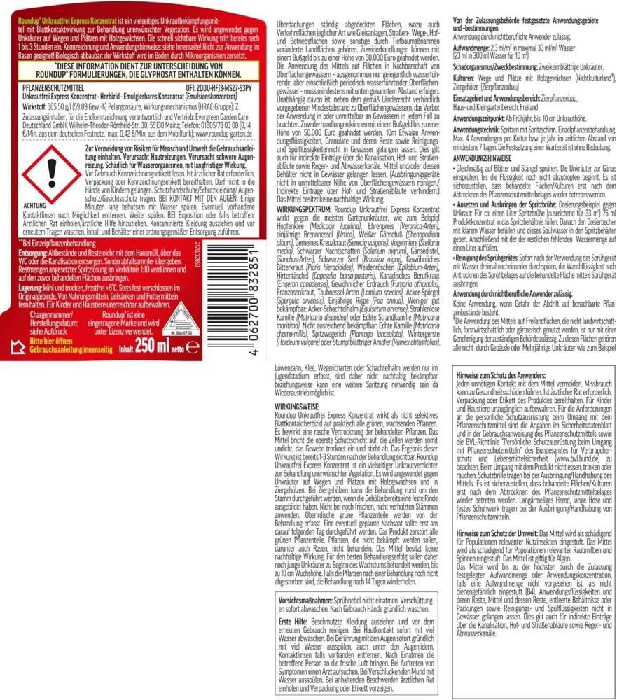 Roundup Express Konzentrat 250 ml - Unkrautfrei, Unkrautvernichter