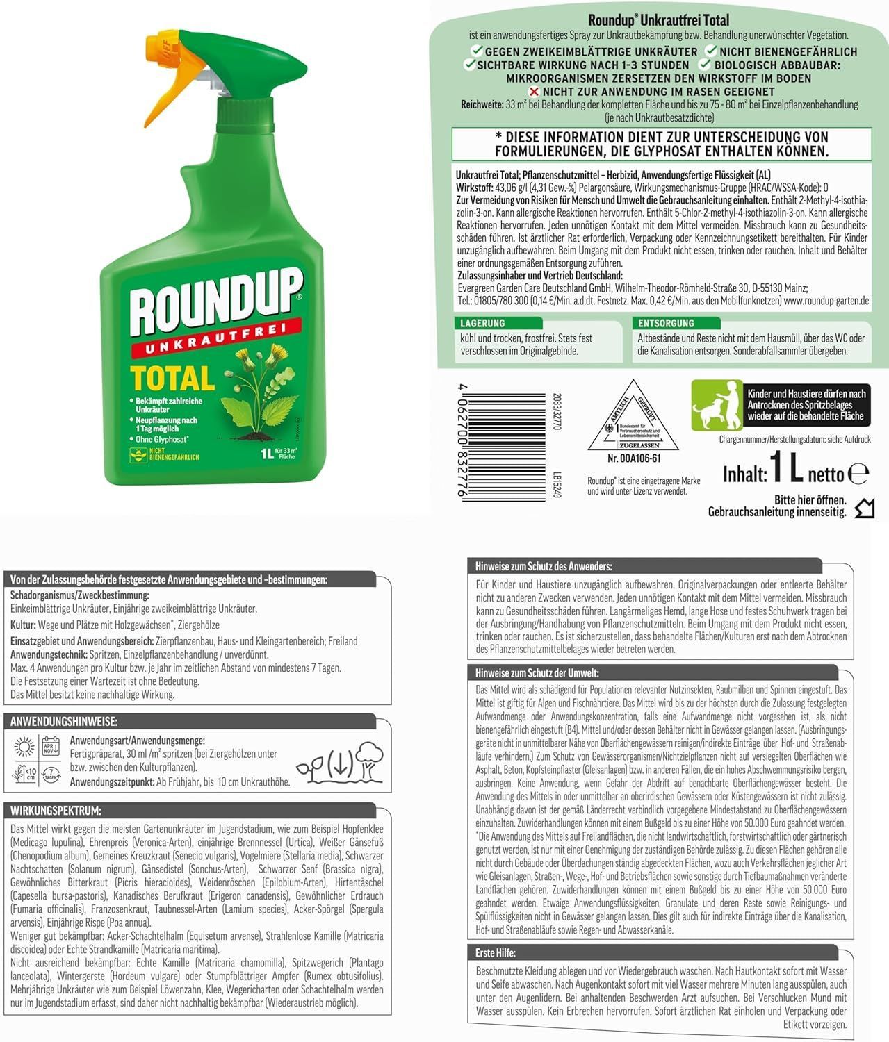 Roundup Unkrautfrei TOTAL, 1 L Sprühflasche