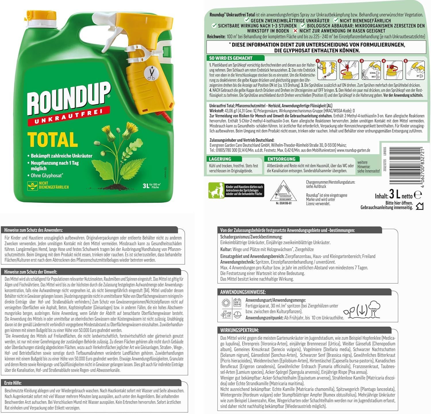 Roundup Unkrautfrei TOTAL, 3 L Sprühflasche
