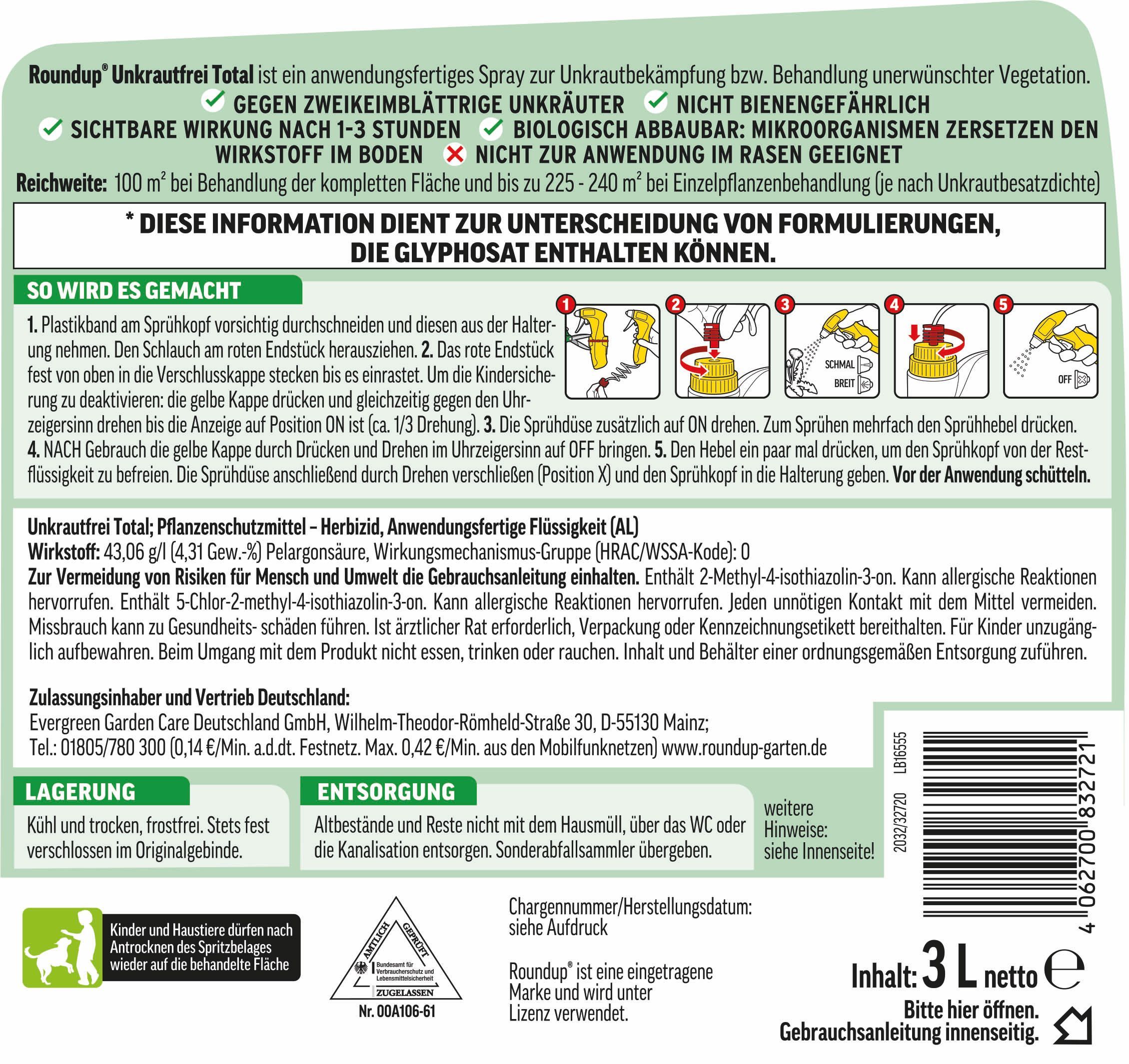 ROUNDUP® Unkrautfrei Total AF Sprühflasche, 3 Liter