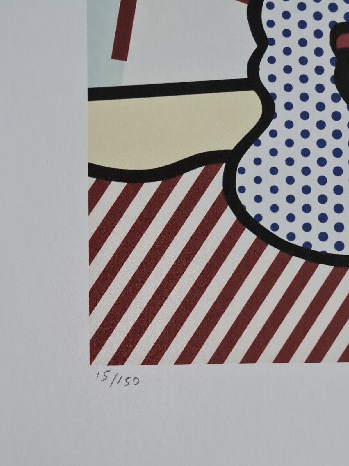 Lithographie Kunstkritik In der Platte signiert und mit der Hand nummeriert Limitierte Auflage von 150 Stück Jedes Stück ist einzeln nummeriert 15 150 Gesamtgröße : 35 cm x 50 cm Trockenstempel des Herausgebers STYRIA STUDIO Stempel Castelli Graphics New York Nach dem Original von Roy Lichtenstein D