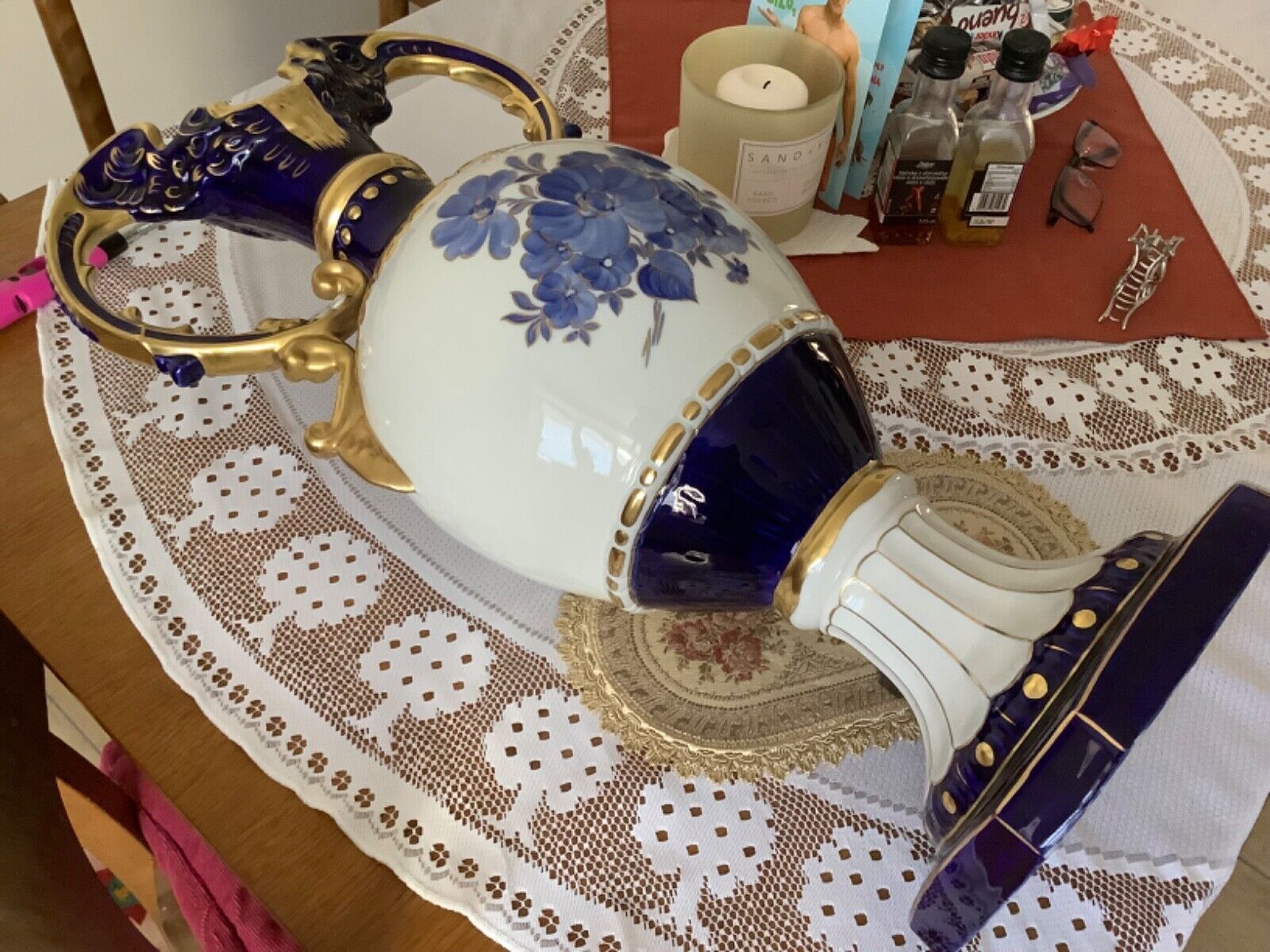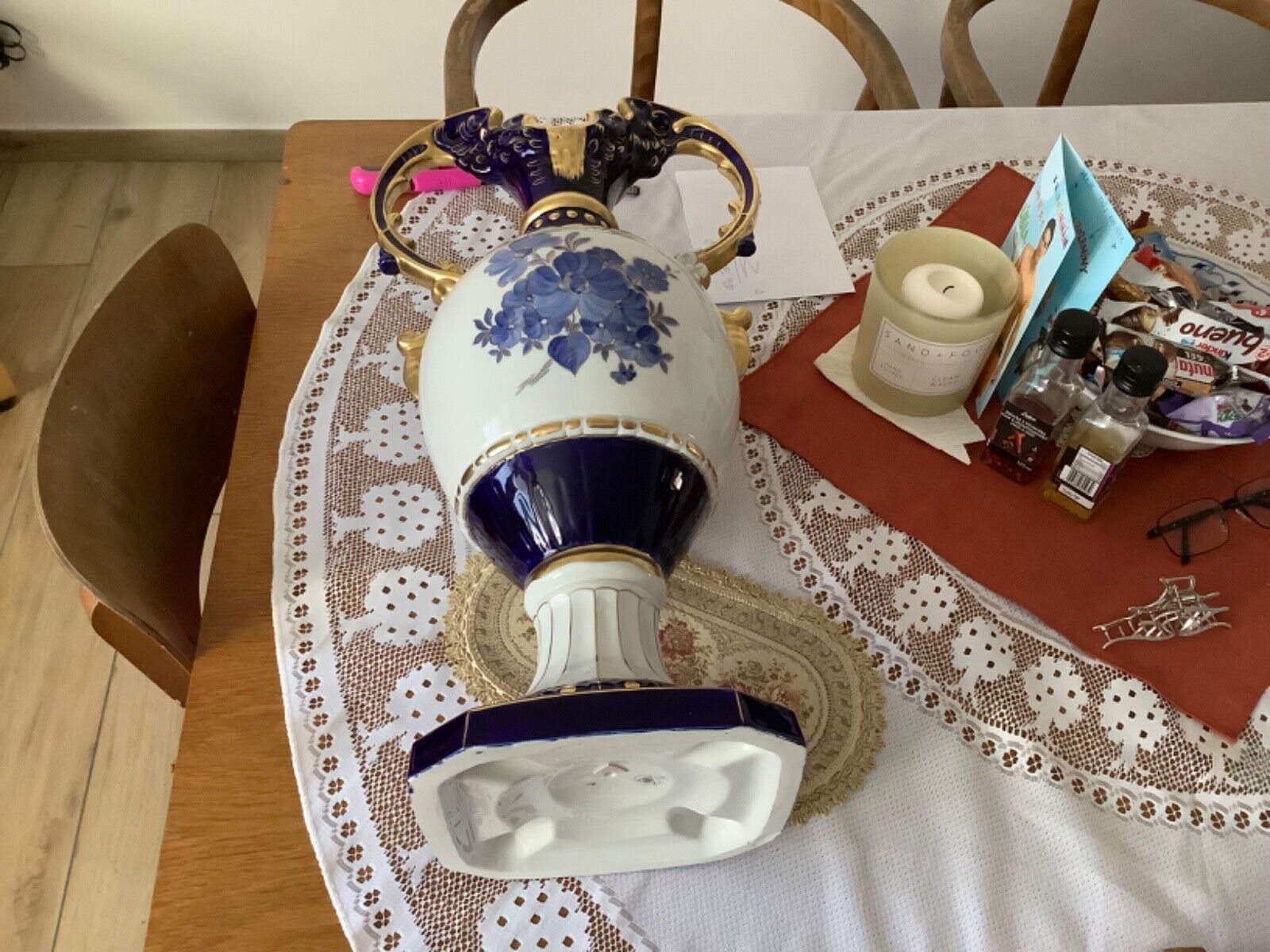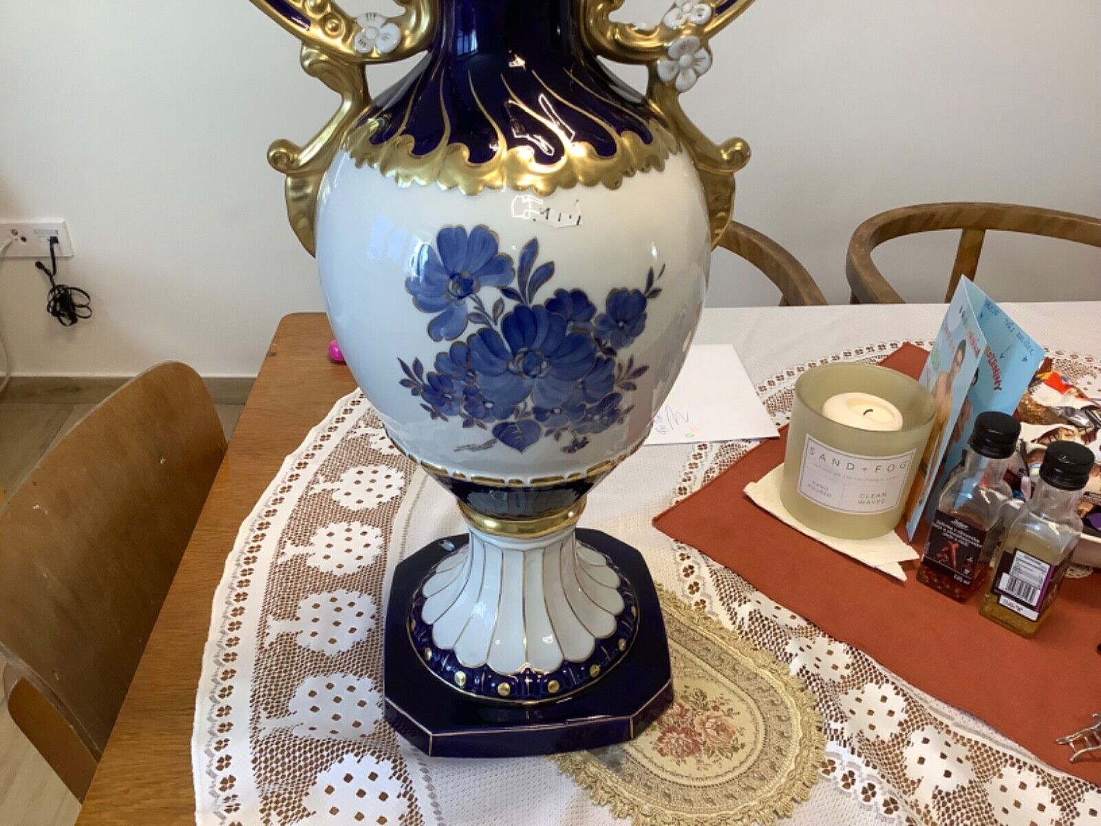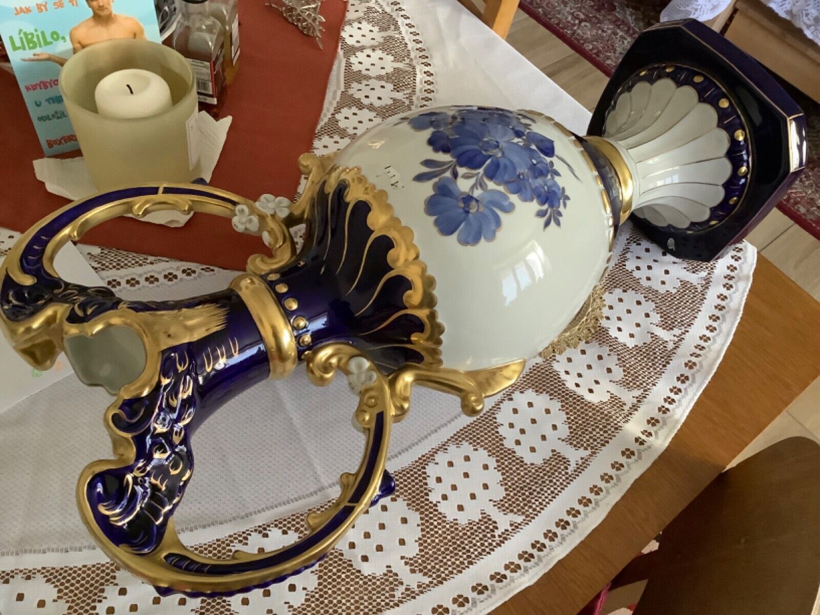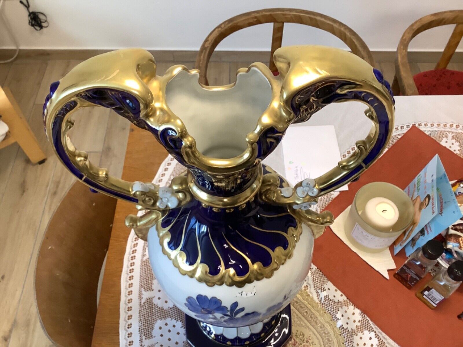 ROYAL DUX Czechoslovakia Vase Amphore Porzellan 60 cm kobaltblau vergoldet
