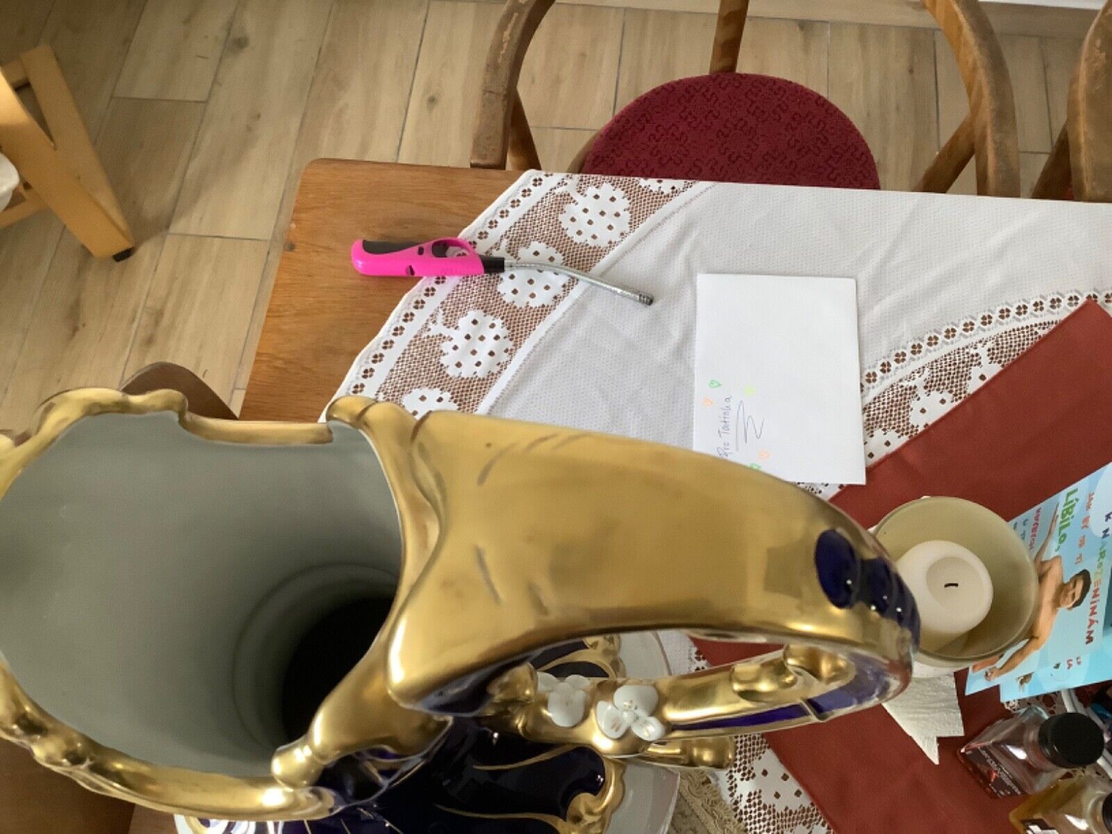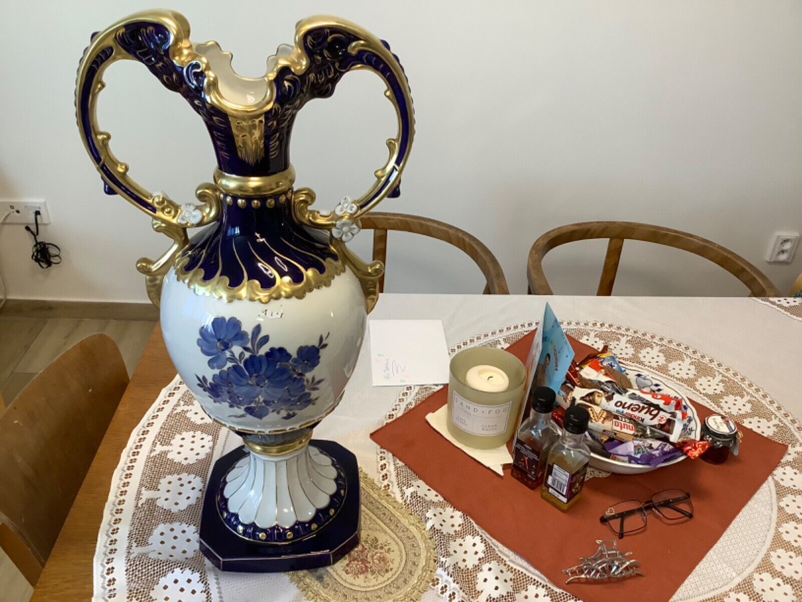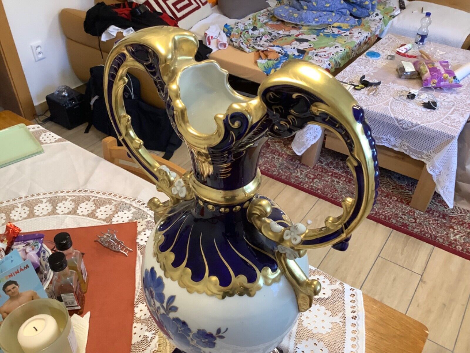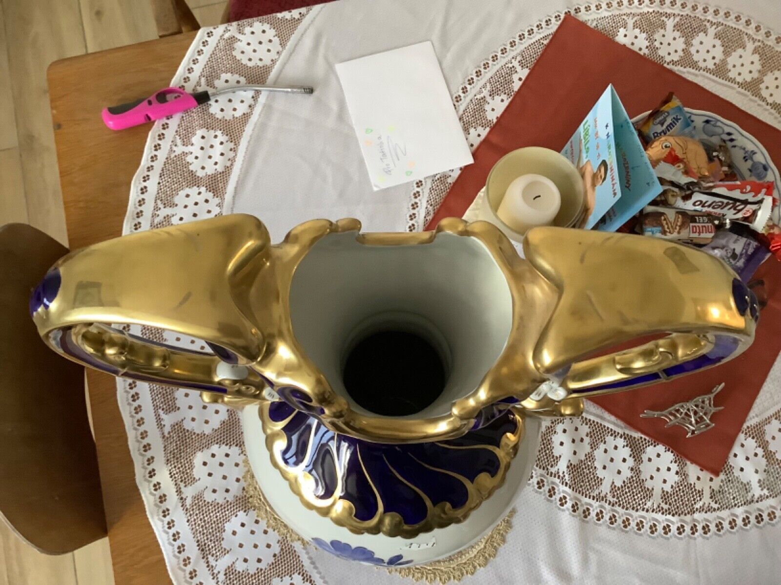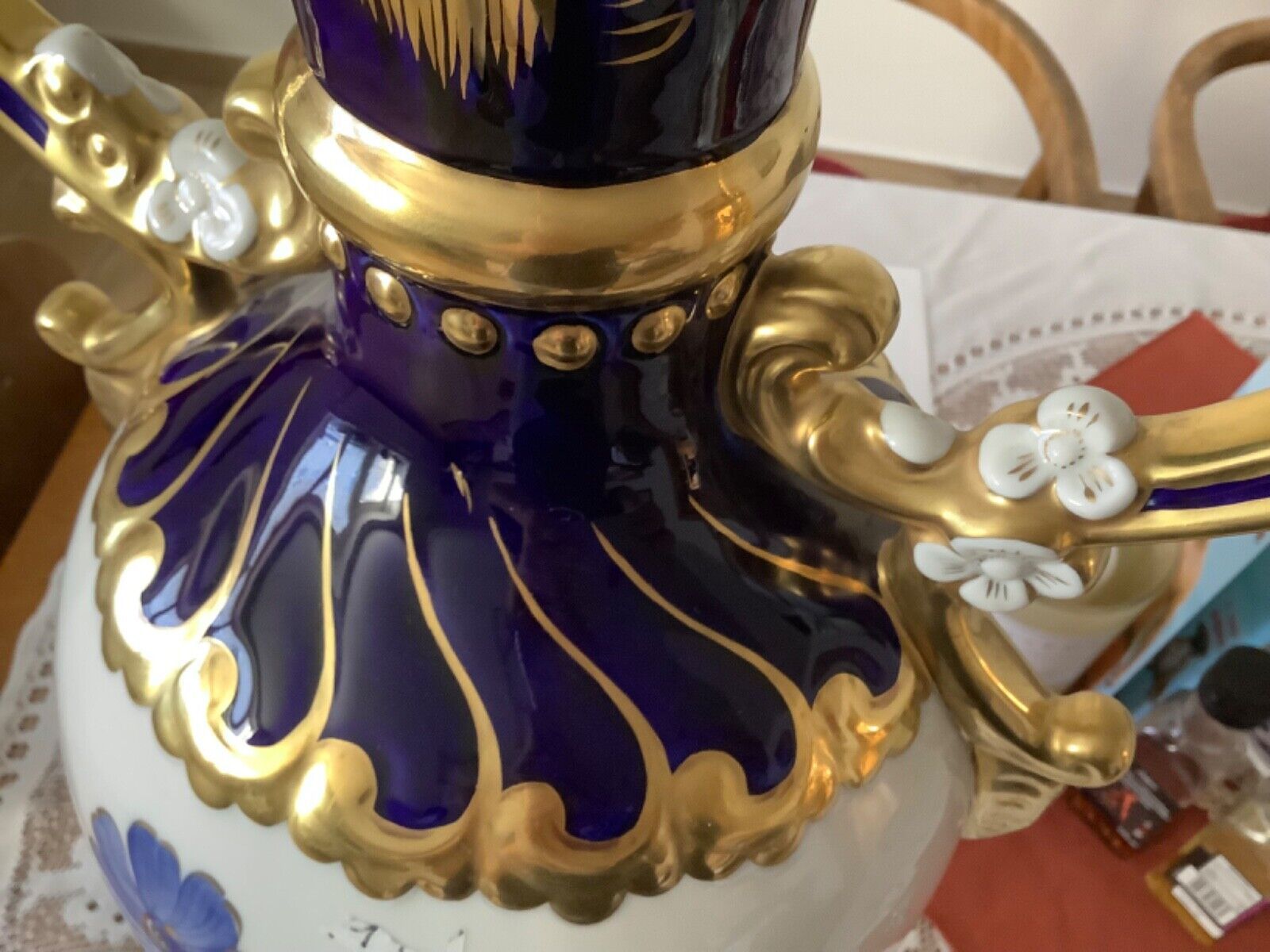 ROYAL DUX Czechoslovakia Vase Amphore Porzellan 60 cm kobaltblau vergoldet