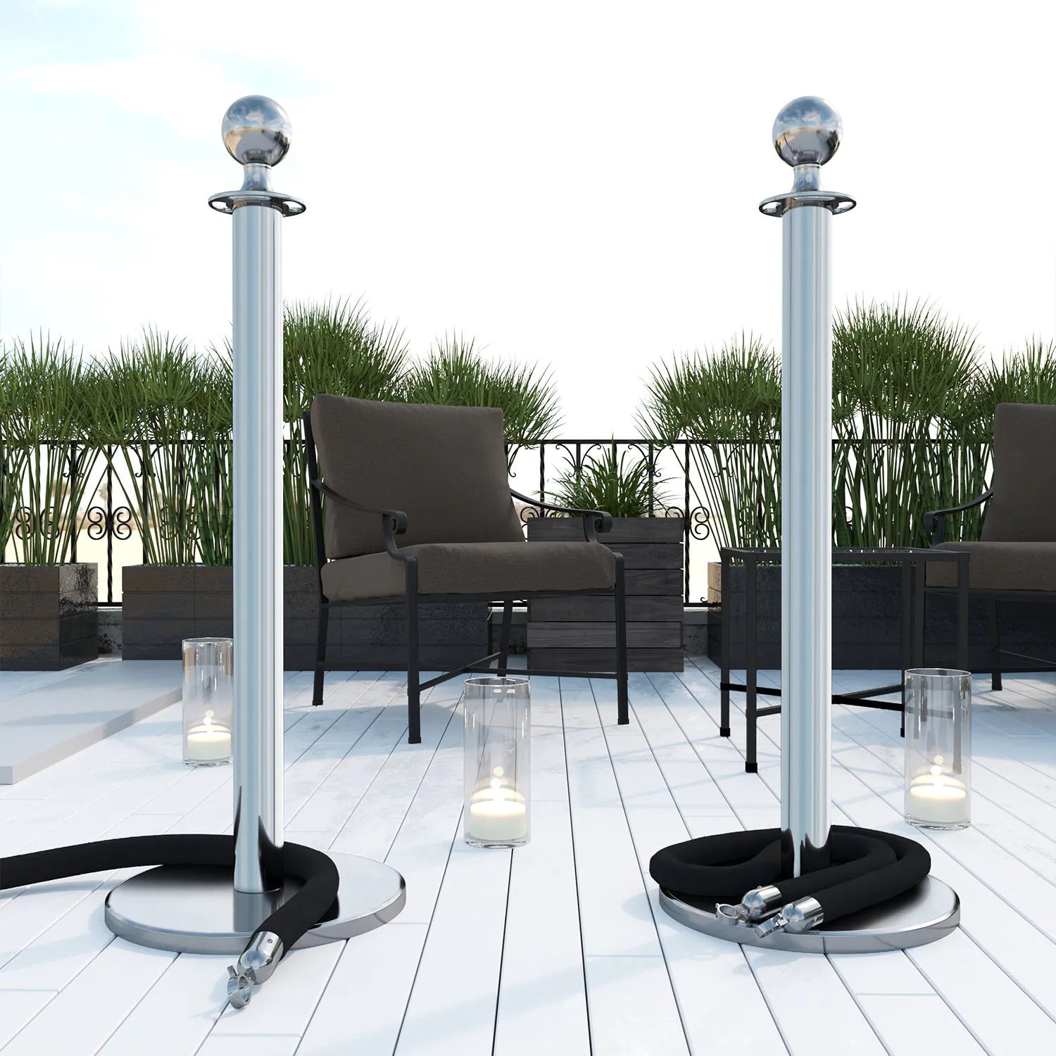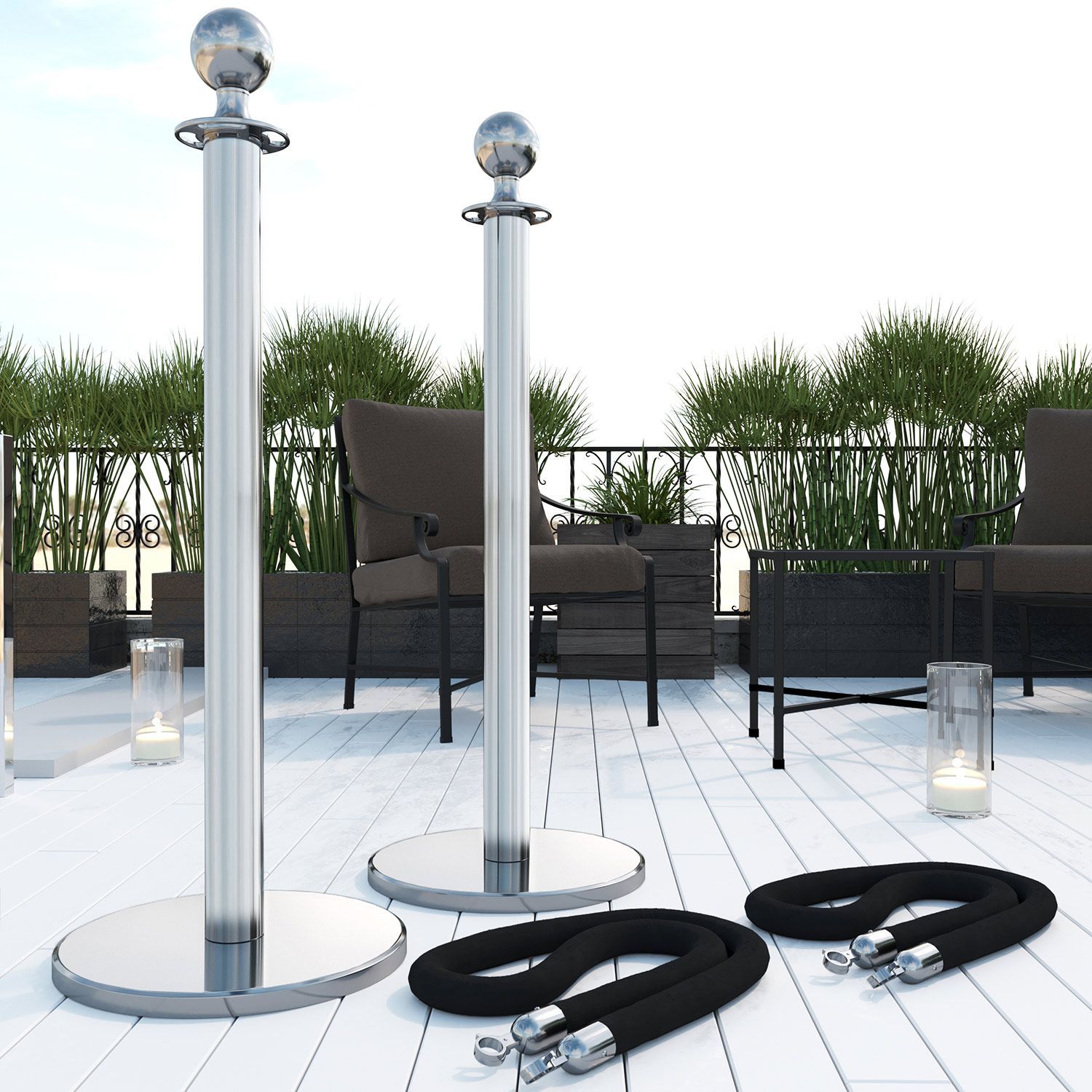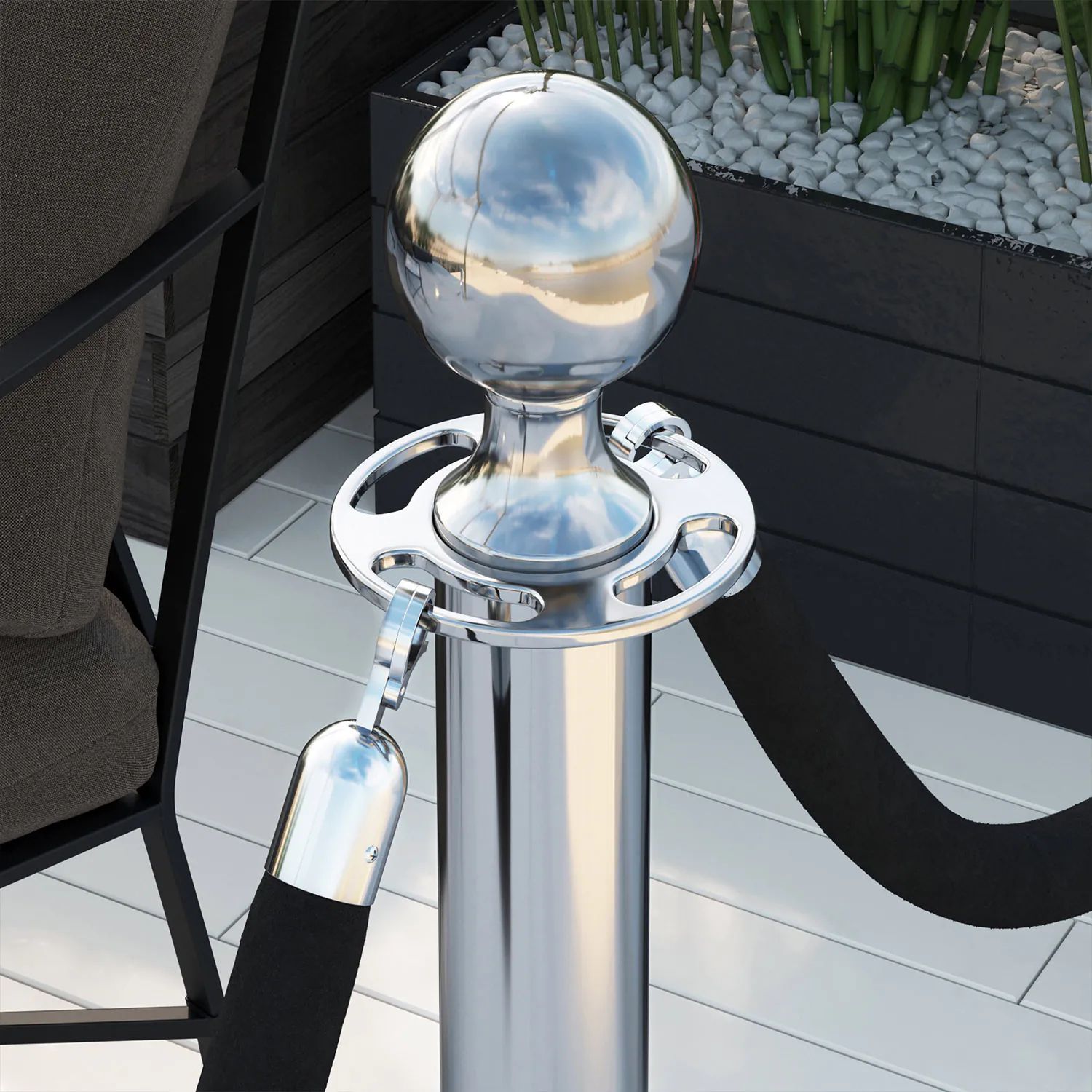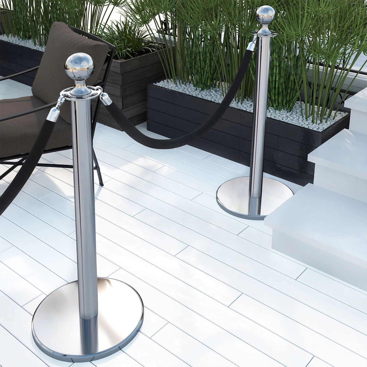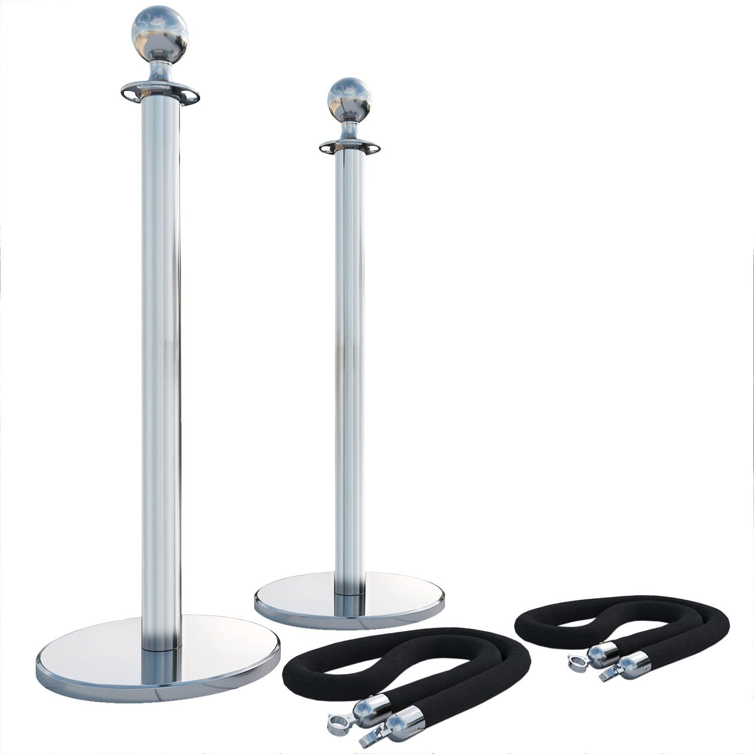 ROYAL | Personenleitsystem | 2xTau 1,5m-Schwarz | 2xPfosten-Chrom | Ständer Abgrenzu