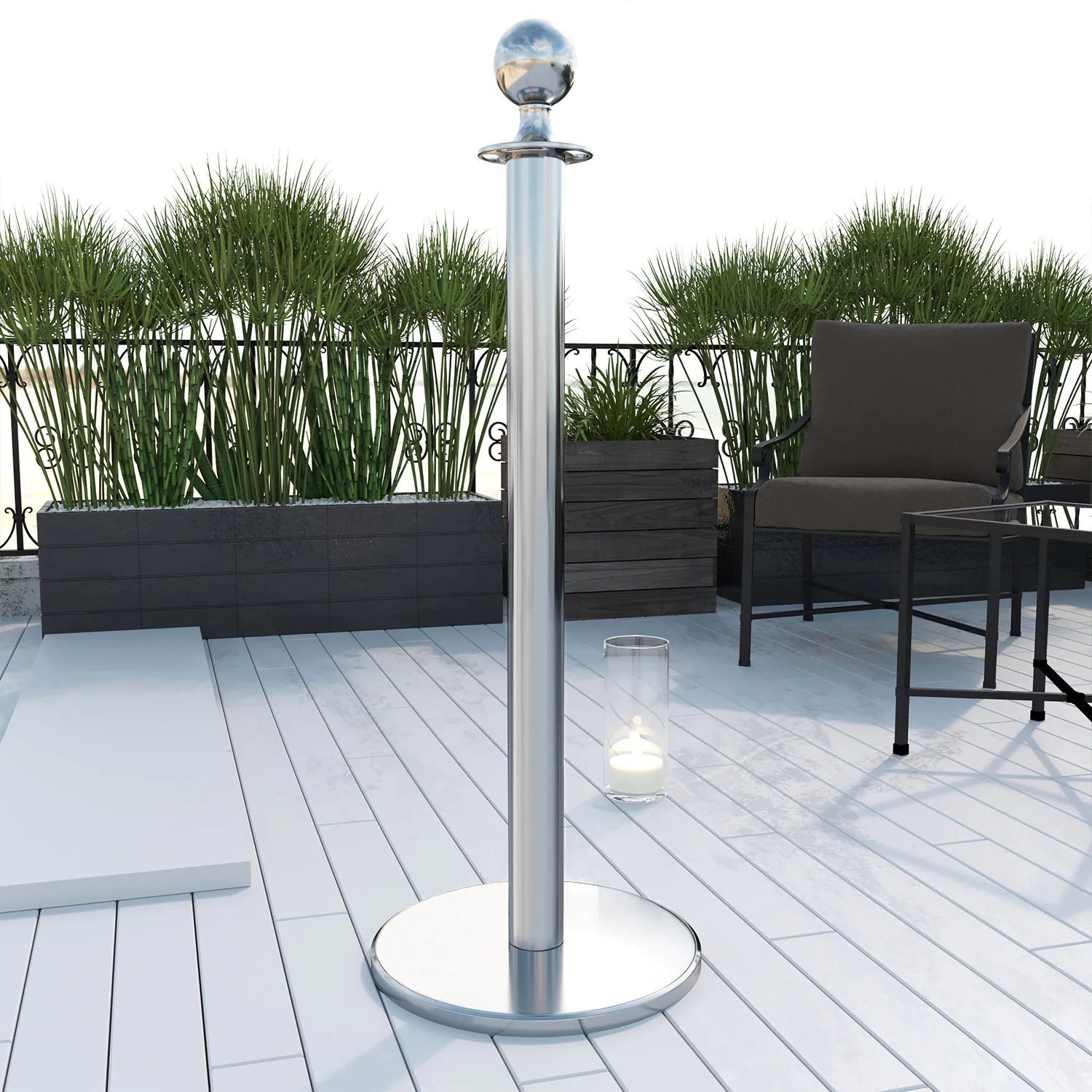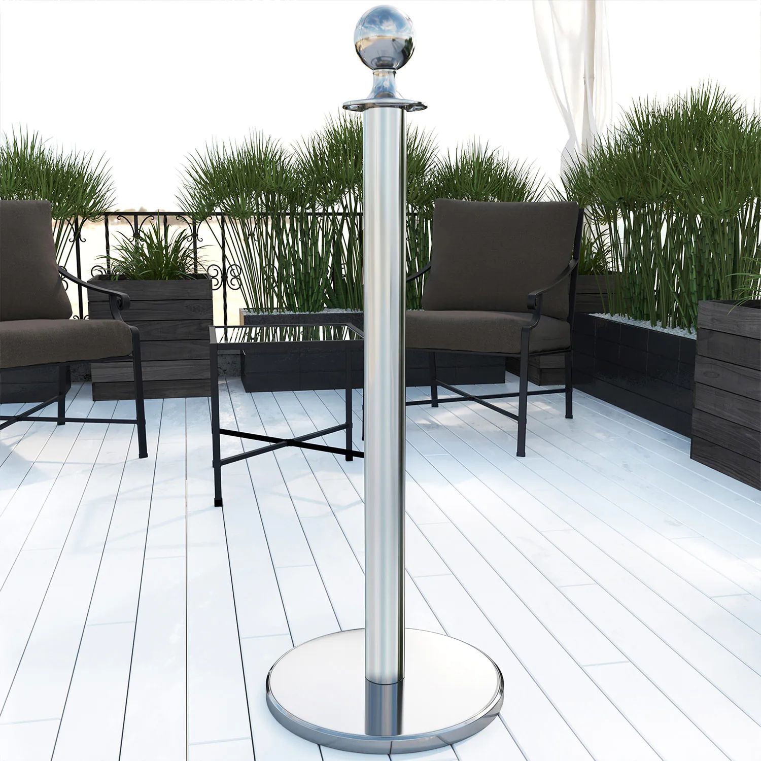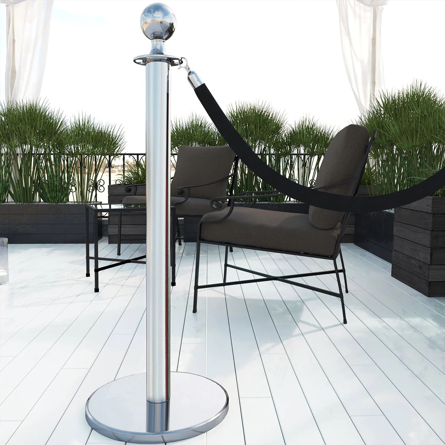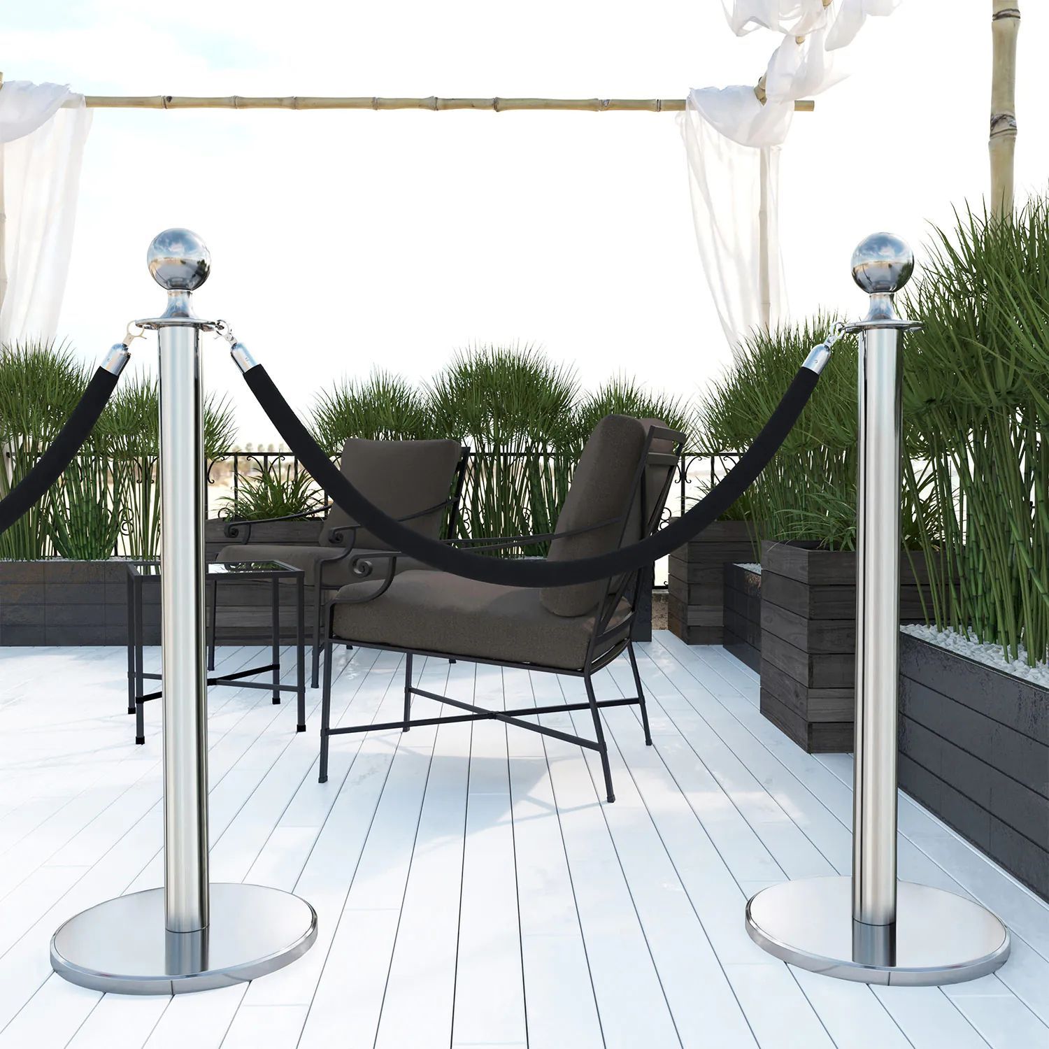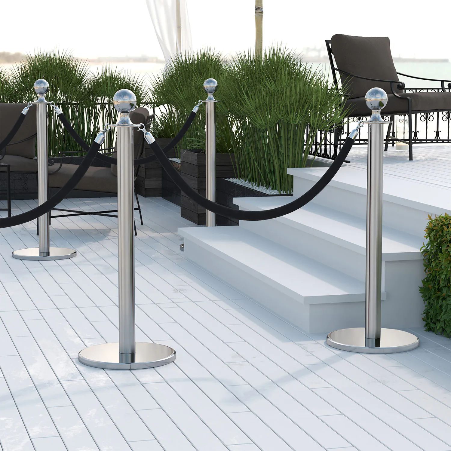 ROYAL | Personenleitsystem | 2xTau 1,5m-Schwarz | 2xPfosten-Chrom | Ständer Abgrenzu