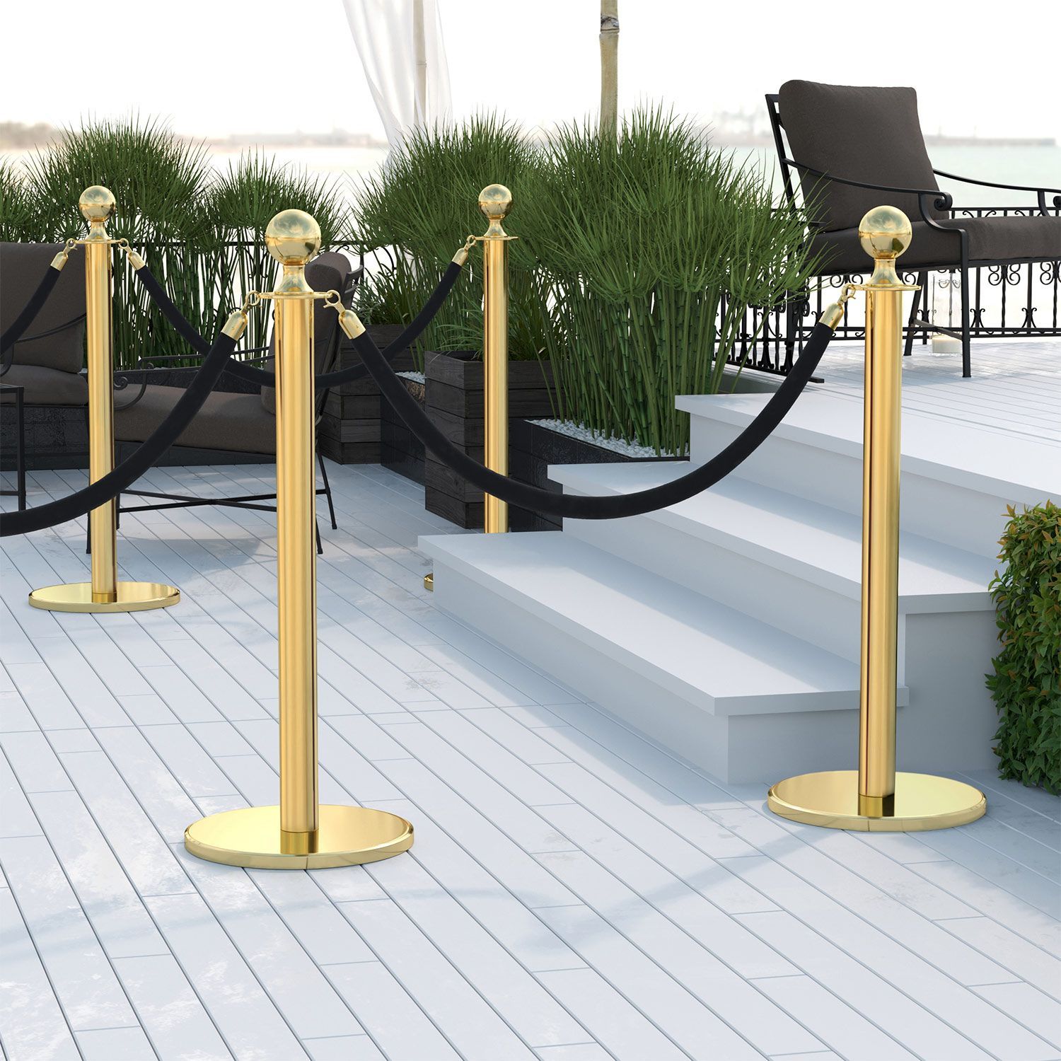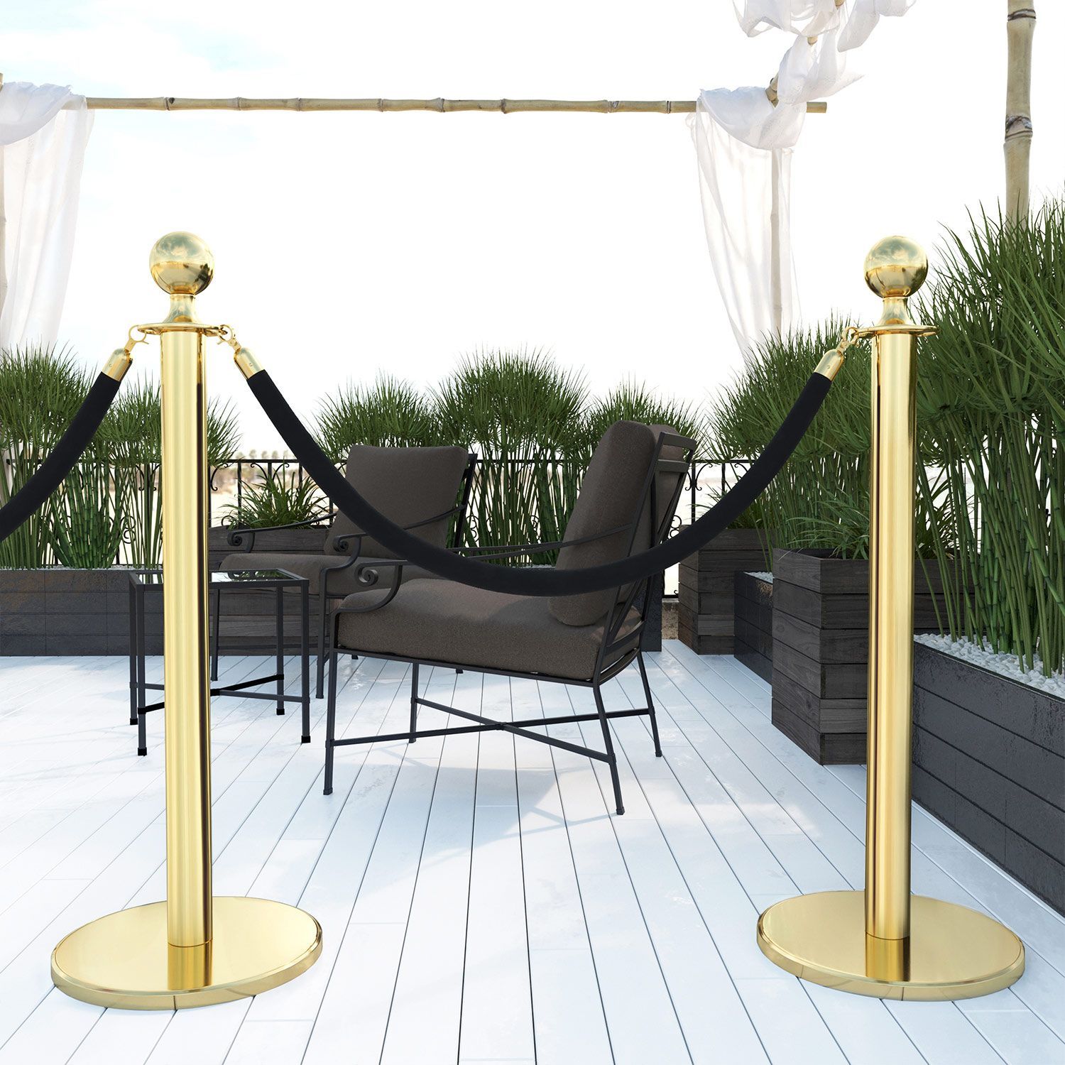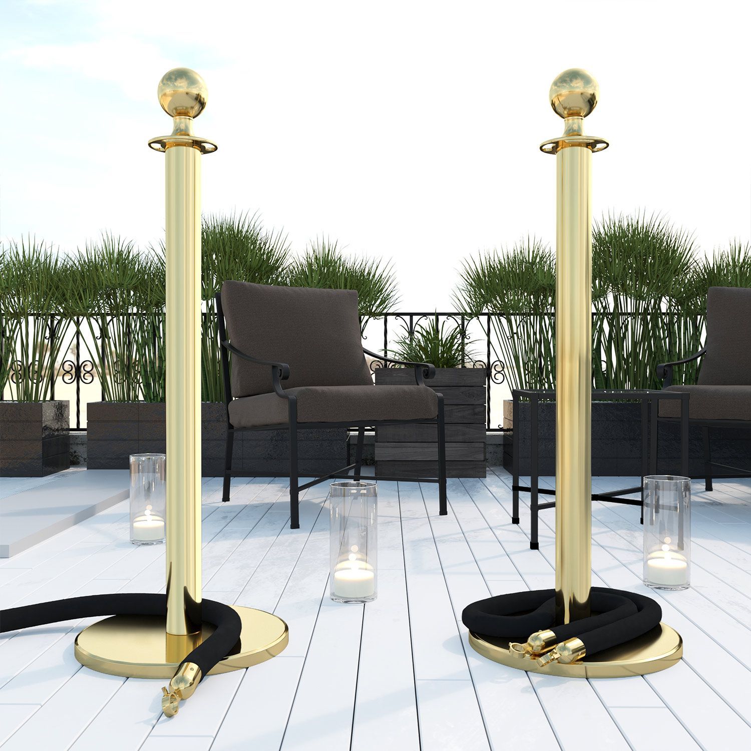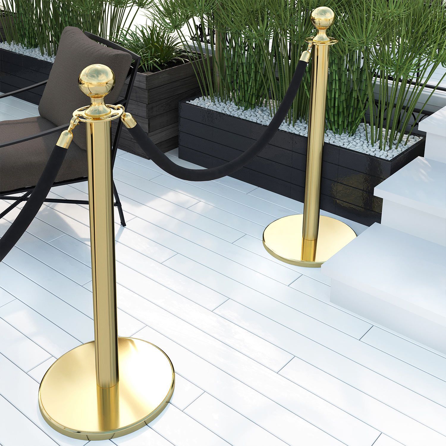 ROYAL | Personenleitsystem | 2xTau 2,0m-Schwarz | 2xPfosten-Gold | Ständer Abgrenzun