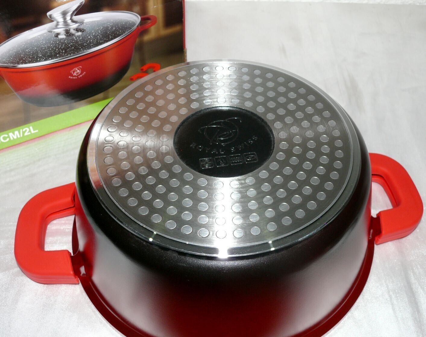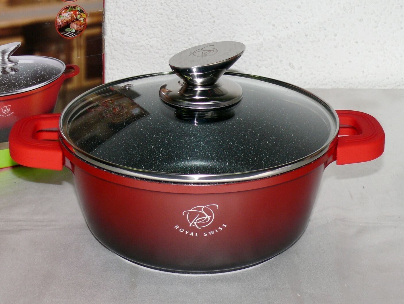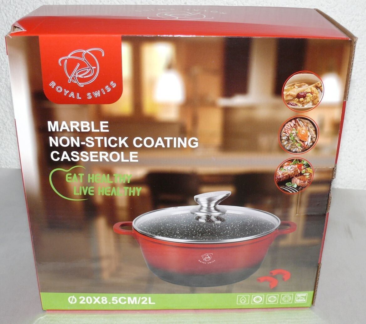 Royal Swiss Ø20cm 2L Koch Suppen Geschirr Casserole Topf Deckel Marmorschicht Ro