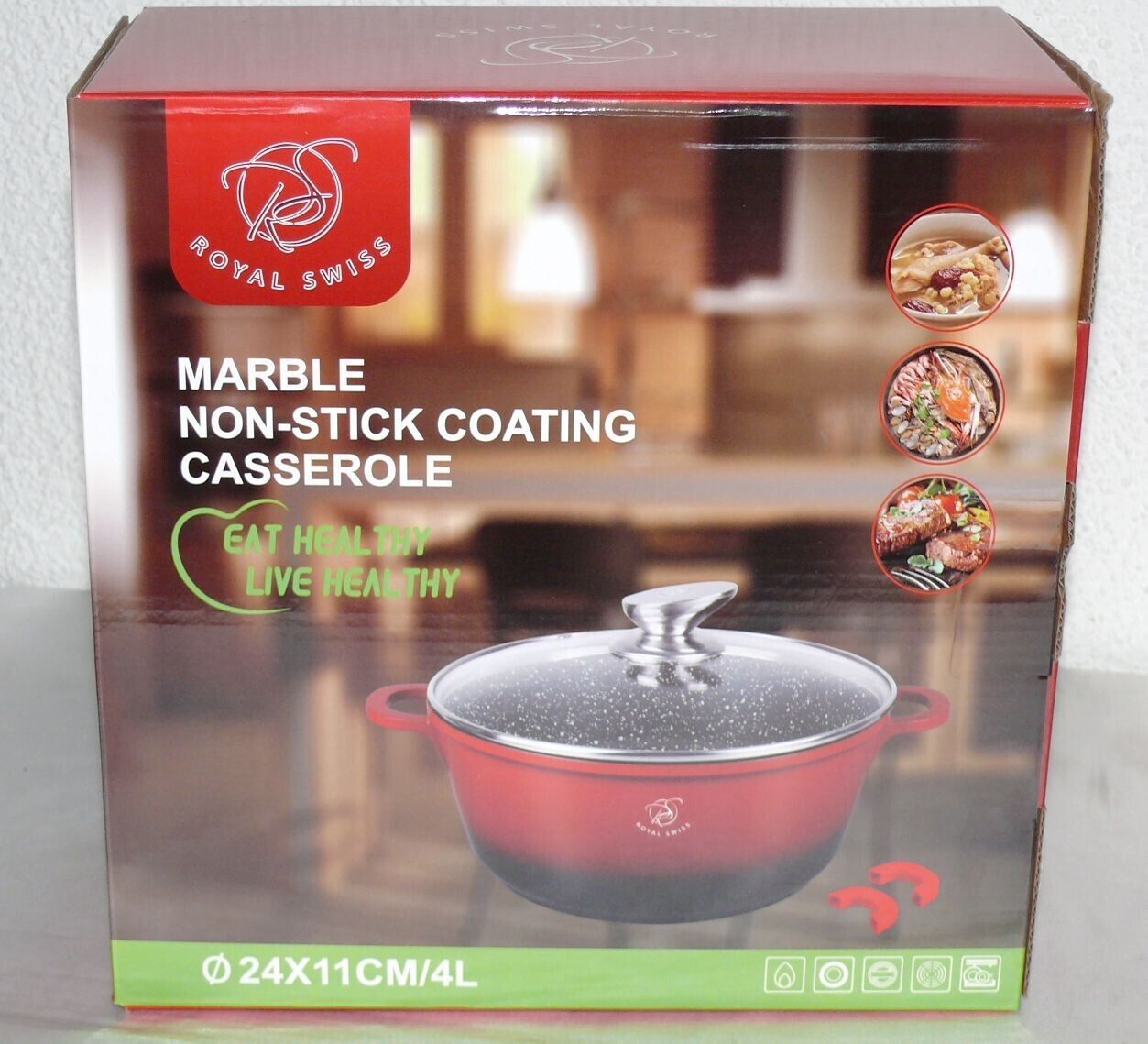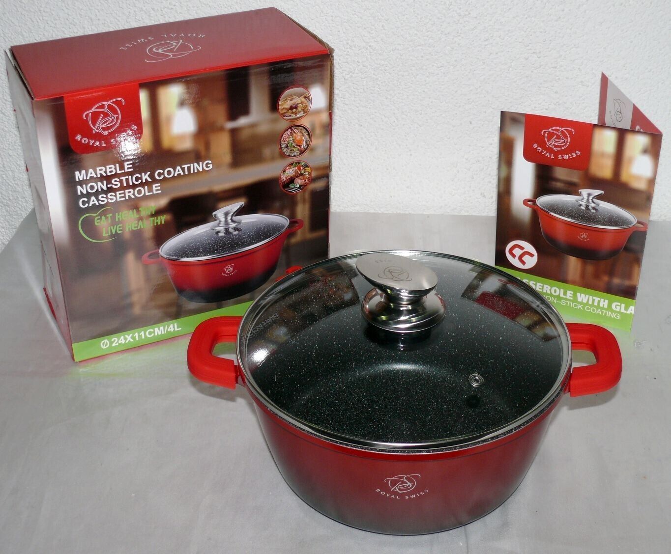 Royal Swiss Ø24cm 4L Koch Suppen Geschirr Casserole Topf Deckel Marmorschicht Ro