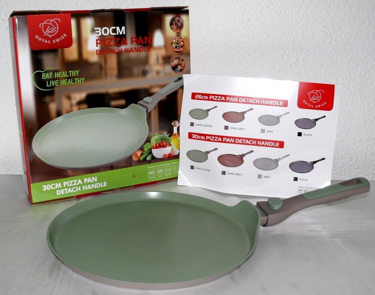 Royal Swiss Ø30cm Crêpes Pizza Brat Pfanne Antihaft ALU PTFE & PFOA Frei Mint