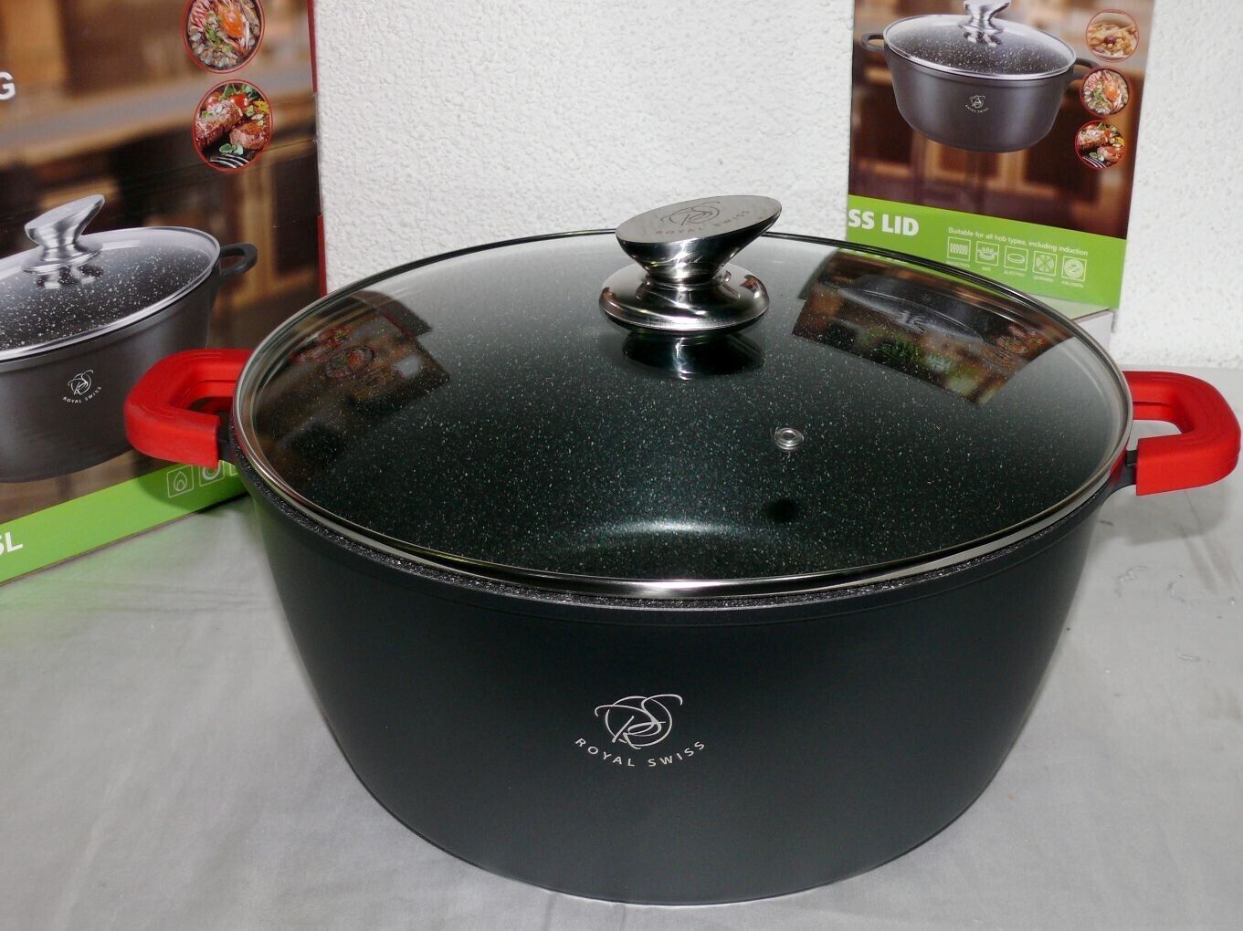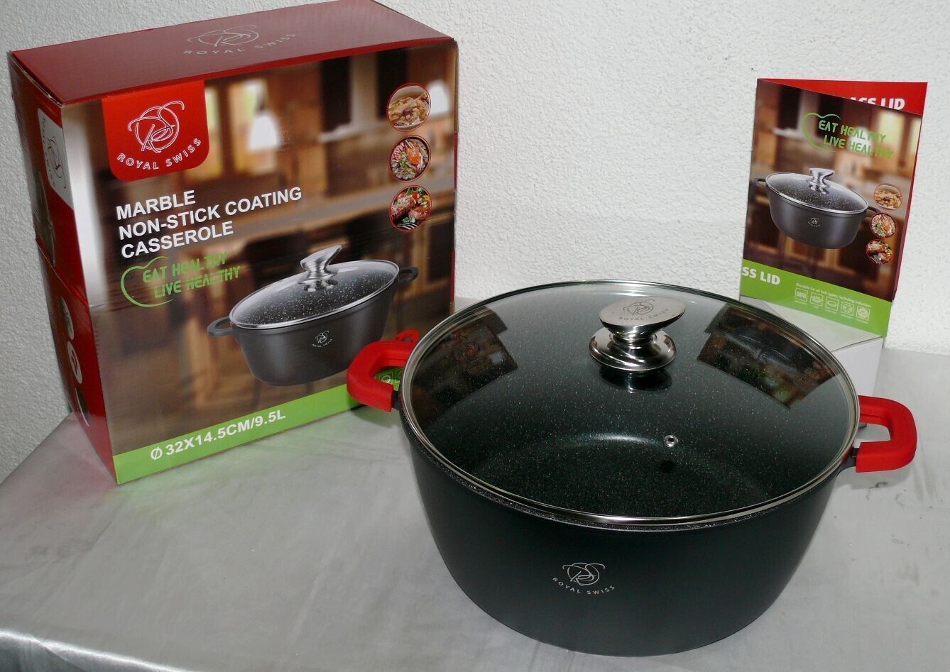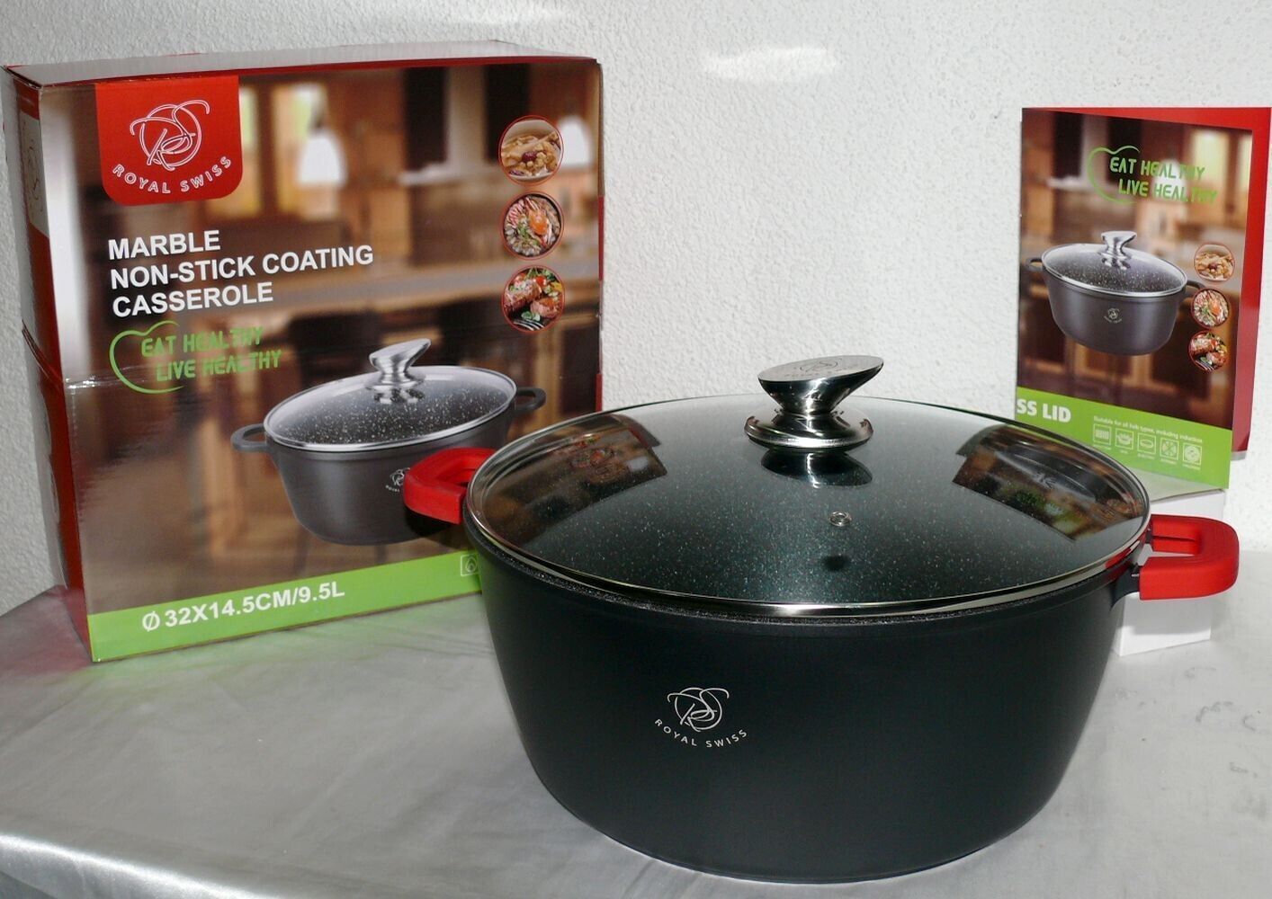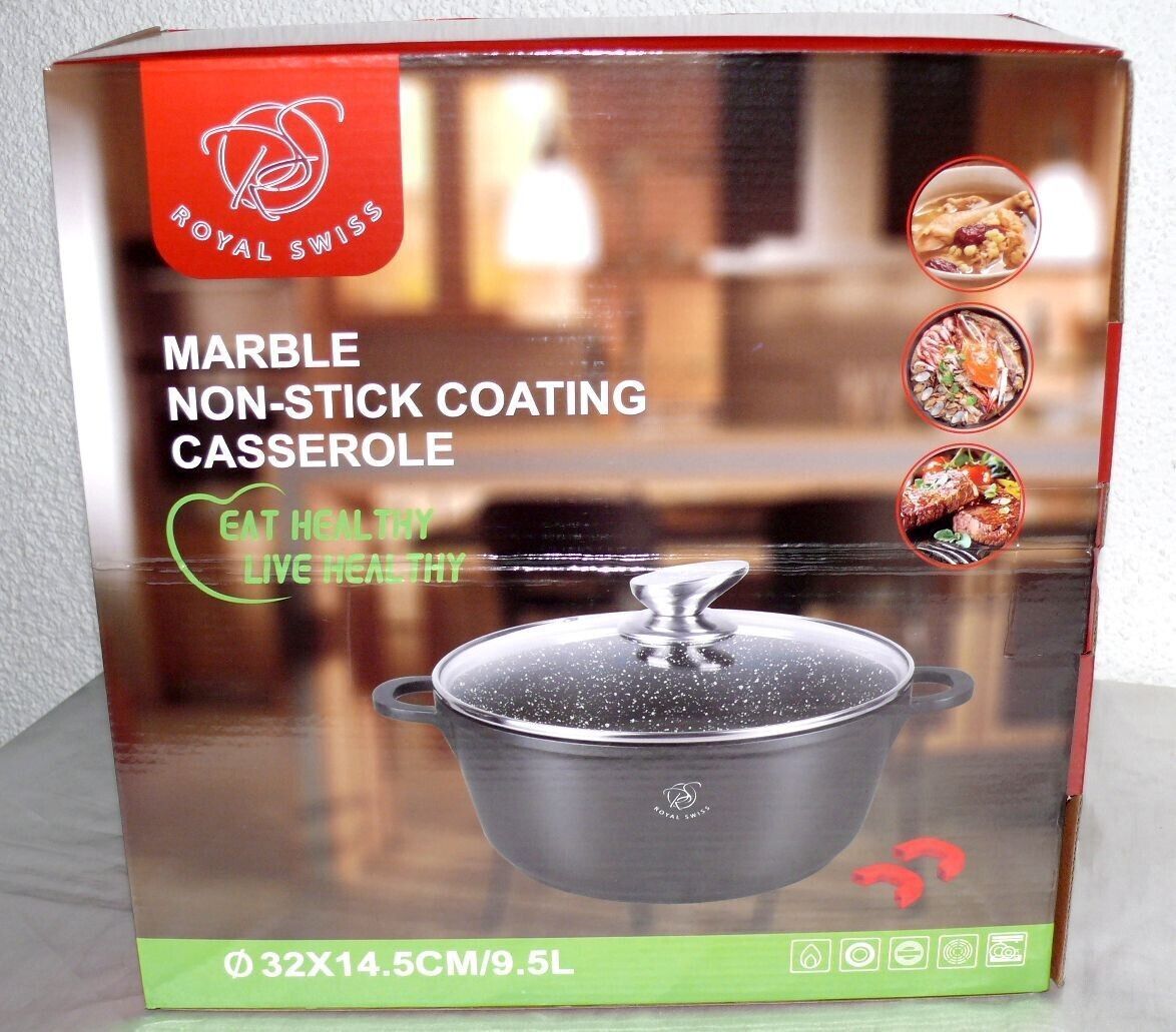 Royal Swiss Ø32cm 9L Koch Suppen Geschirr Casserole Topf Deckel Marmorschicht BK
