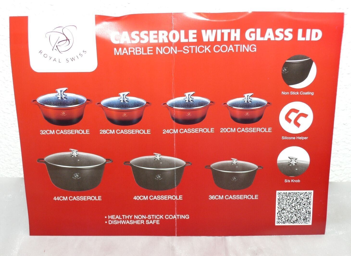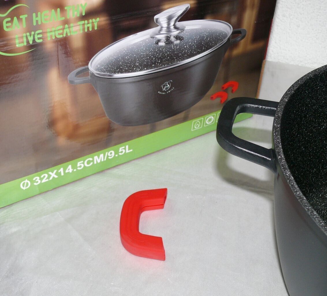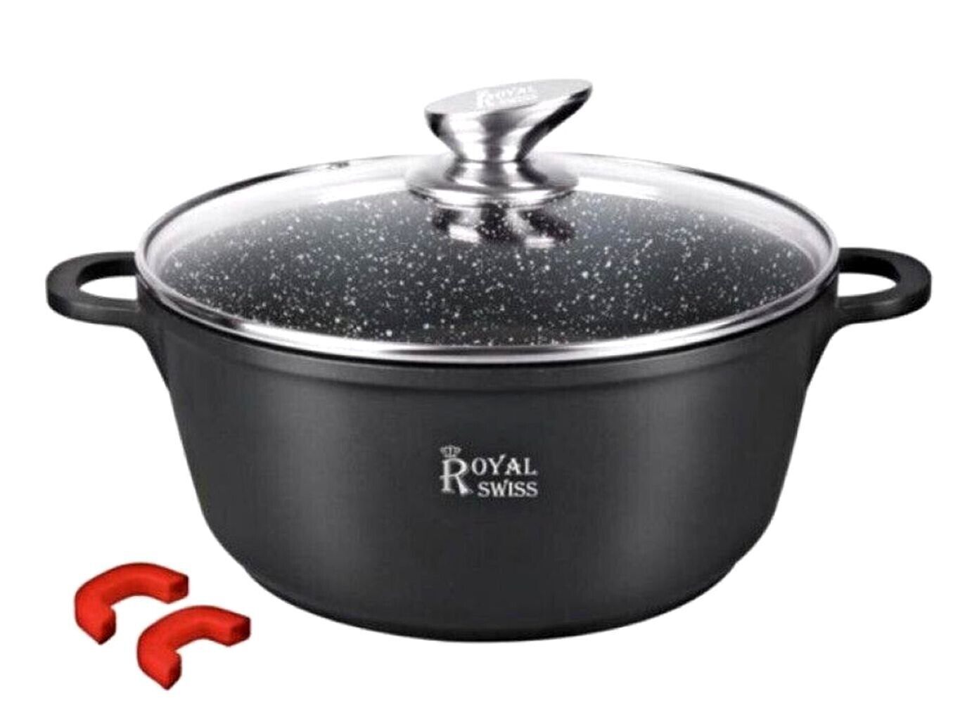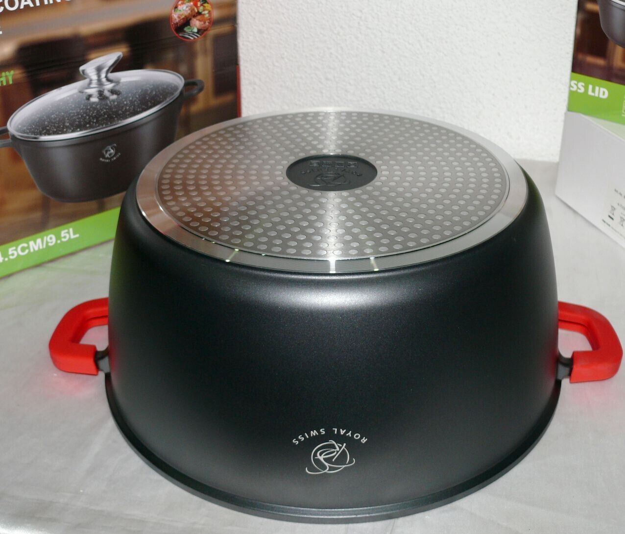 Royal Swiss Ø32cm 9L Koch Suppen Geschirr Casserole Topf Deckel Marmorschicht BK