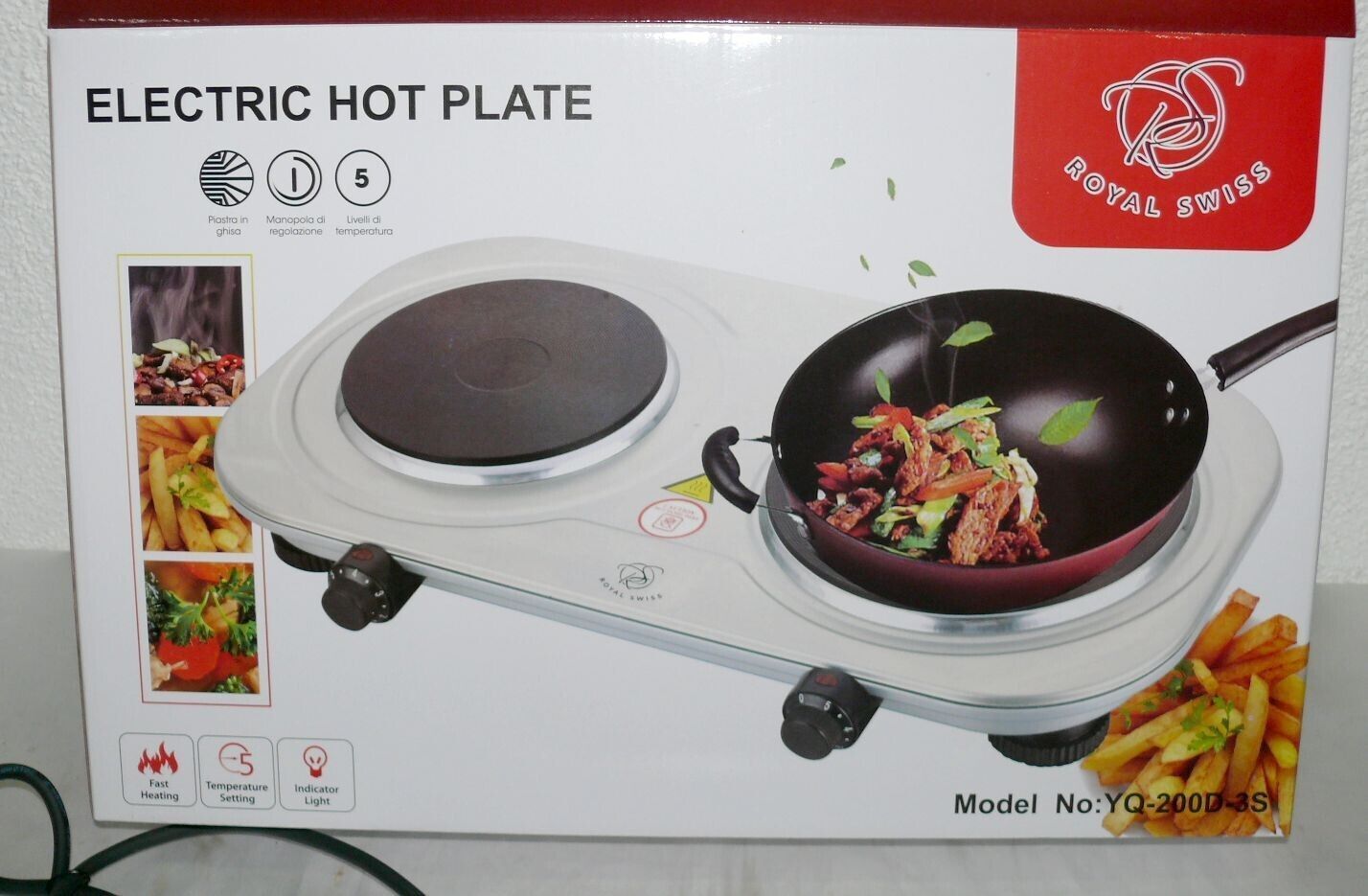 Royal Swiss YQ200D3S Doppel Kochplatte Kochfeld 2500W Camping Garten Kochen Edel