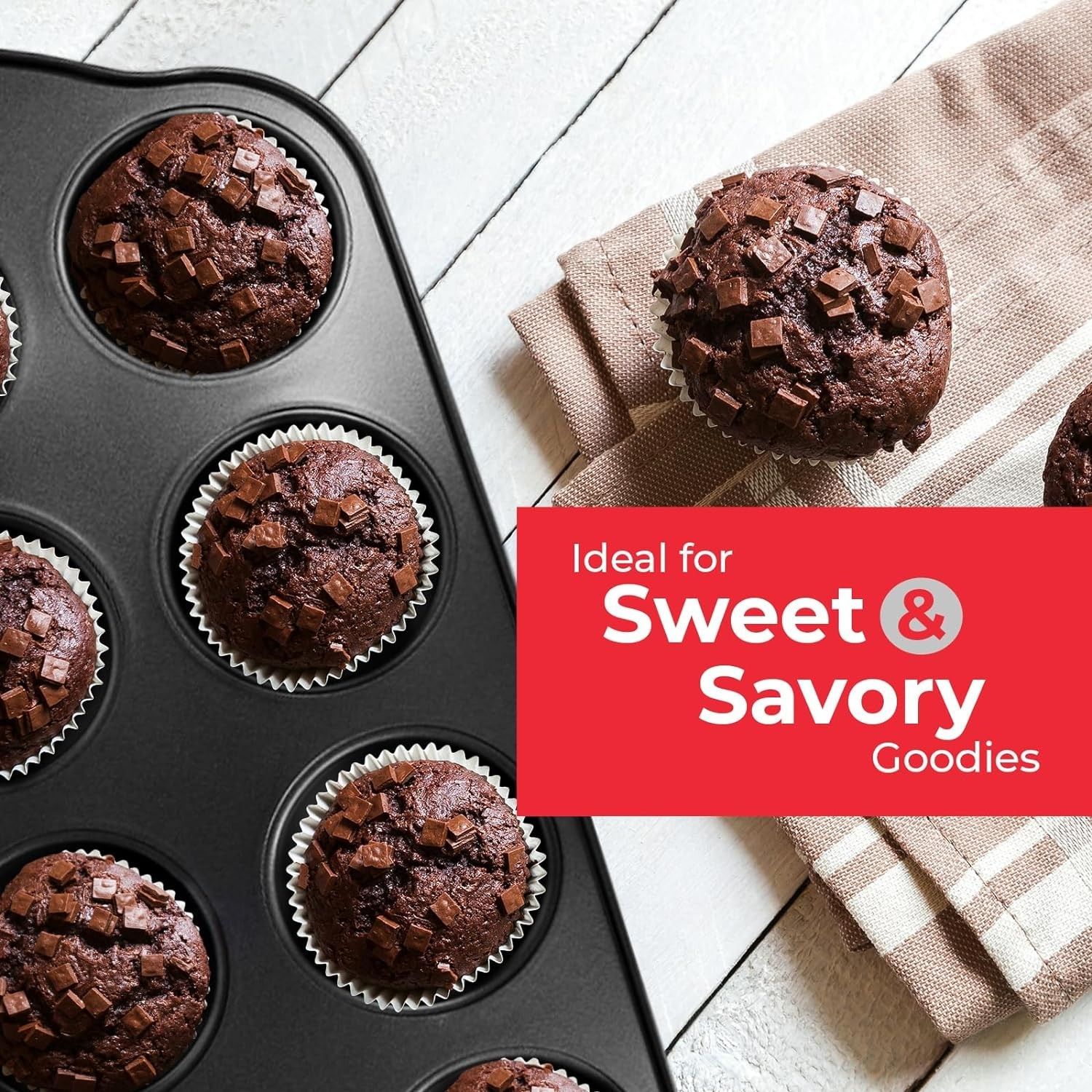 Royalty Line RL-MFN12 Muffinform: 39×28×3 cm Aluminium mit langlebiger Marmorbeschichtung für antihaftfunktion und gleichmäßige Wärmeverteilung. Fassungsvermögen: 12 Muffins, Cupcakes, Mini-Quiches oder Donuts. Hitzebeständig, spülmaschinengeeignet (alternativ Handwäsche) und besonders pflegeleicht. Robuste, formstabile Konstruktion für gleichmäßige Backergebnisse – ideal für Hobby- und Profibäcker.