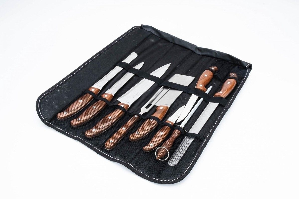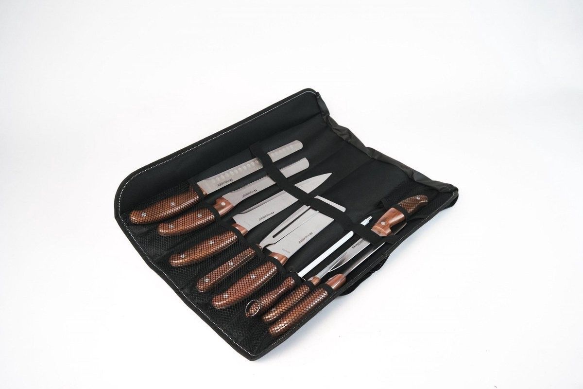 Royalty Line - Premium Messerset mit Lederetui (9-teilig), Holzoptikgriff