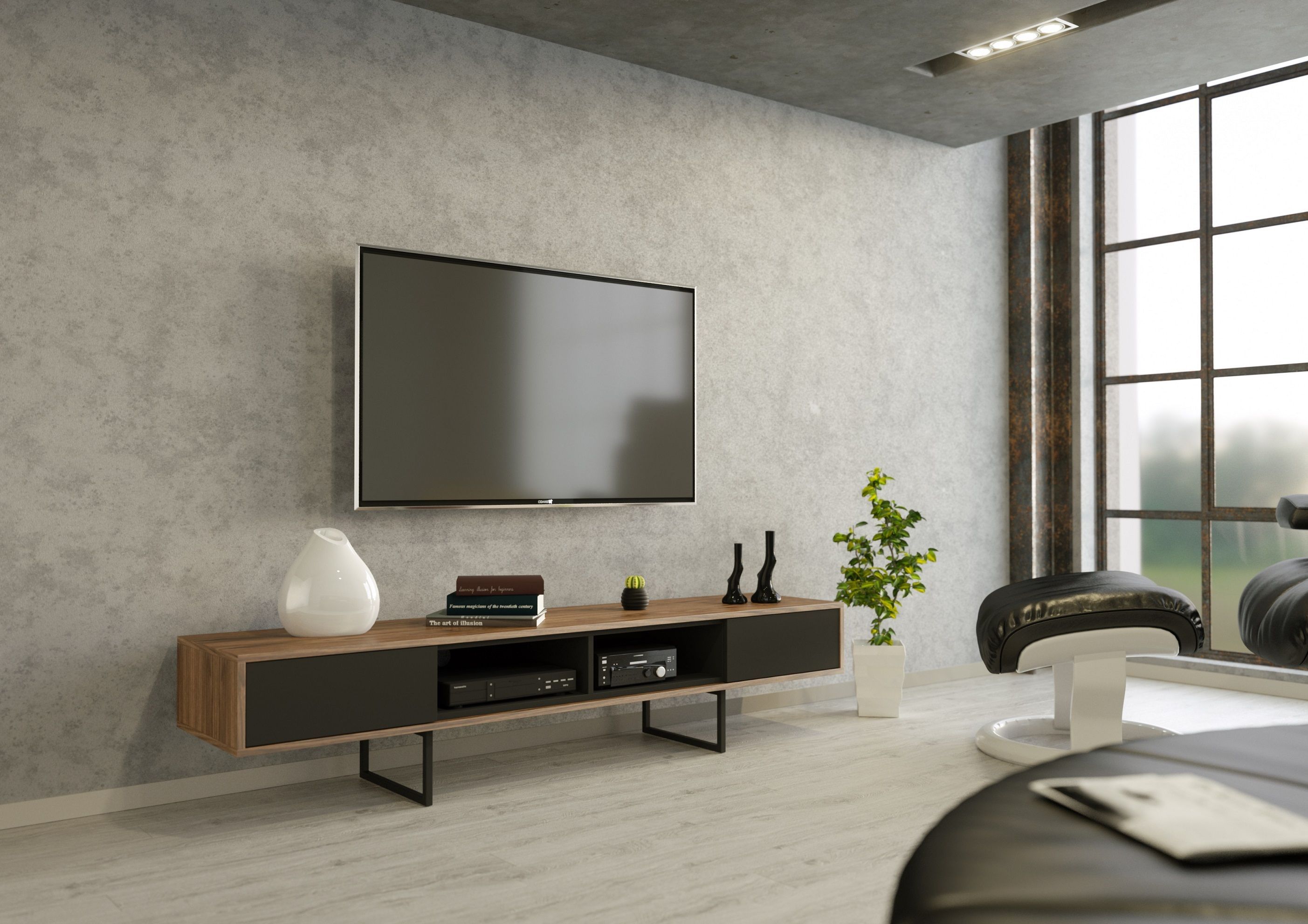 RTV Regal Wohnzimmer TV-Schrank Fernsehschrank Stehend Walnuss Abato FX Graphit