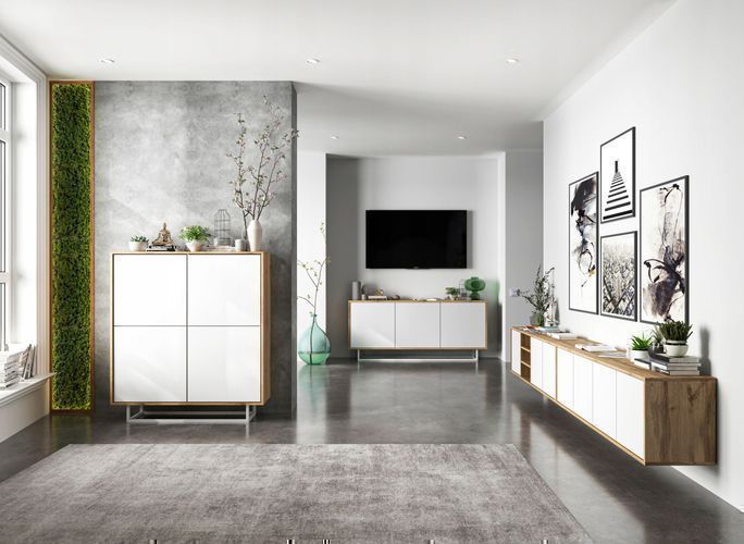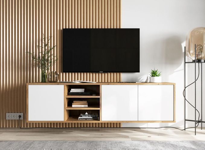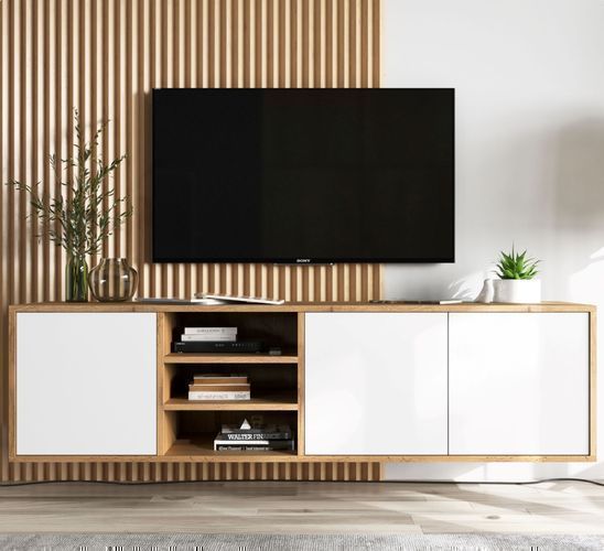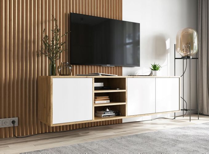 RTV-Wandschrank Fernsehschrank Modern TV-Schrank RTV 150 cm Wotan Eiche - Weiß Matt