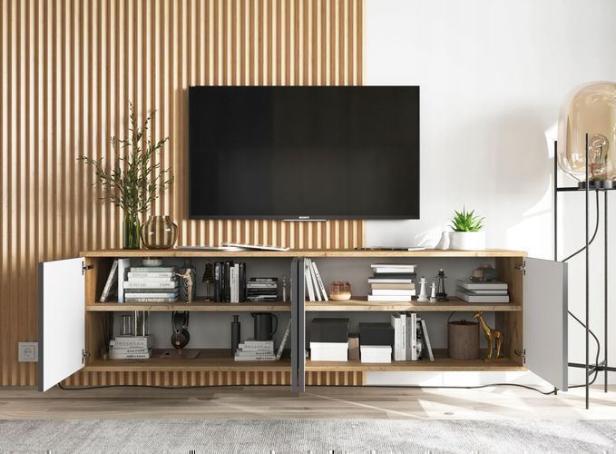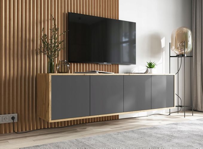 RTV-Wandschrank TV-Lowboard Modern TV-Schrank 150 cm Wotan Eiche Graphit Matt