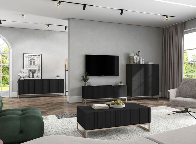 RTV-Wandschrank TV-Schrank Glamour Modern TV-Lowboard TV Möbel Schwarz Matt