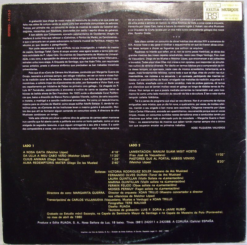 Condition Vinyl Near Mint (NM or M-) Condition Sleeve Very Good (VG) Tracks included: I 1. A Nosa Gaita Written-By : Melchor López 2. Da Ulla A Meu Cabo Veño Written-By : Melchor López 3. Cuius Animan Written-By : Diego Verdugo 4. Alma Redemptoris Mater Written-By : Diego De Las