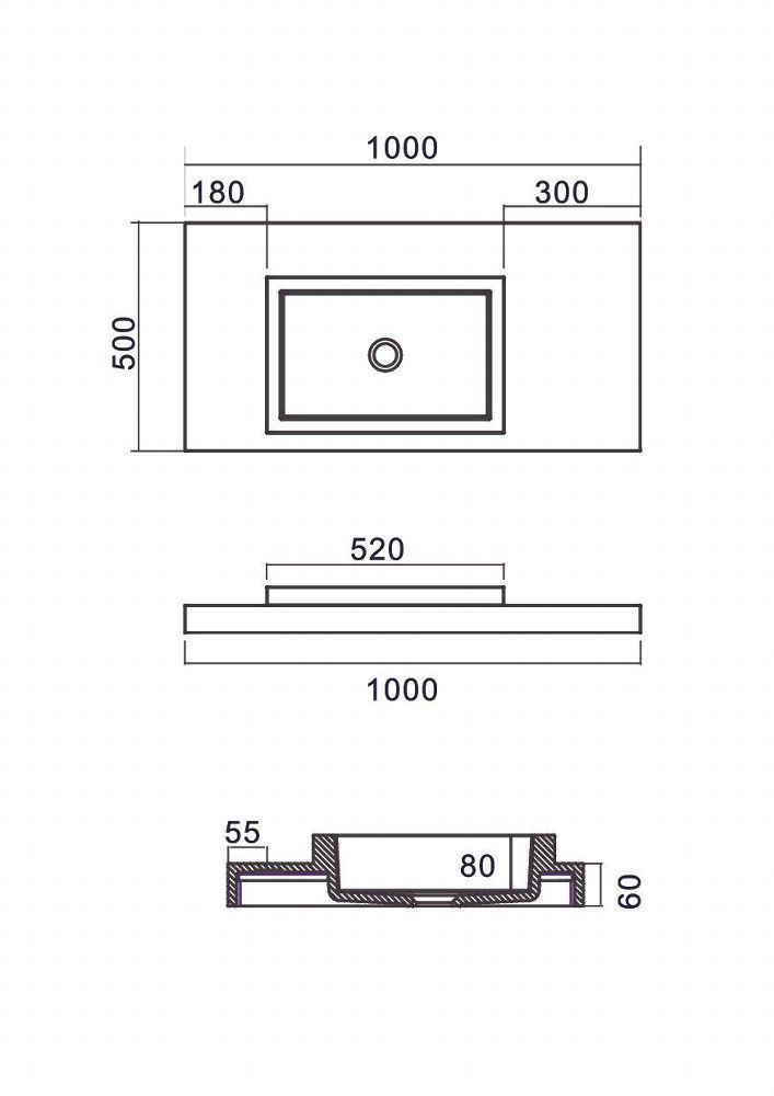 Rubicer Bad Arbeitsplatten, 100x50x10cm aus hochwertiger Keramik,