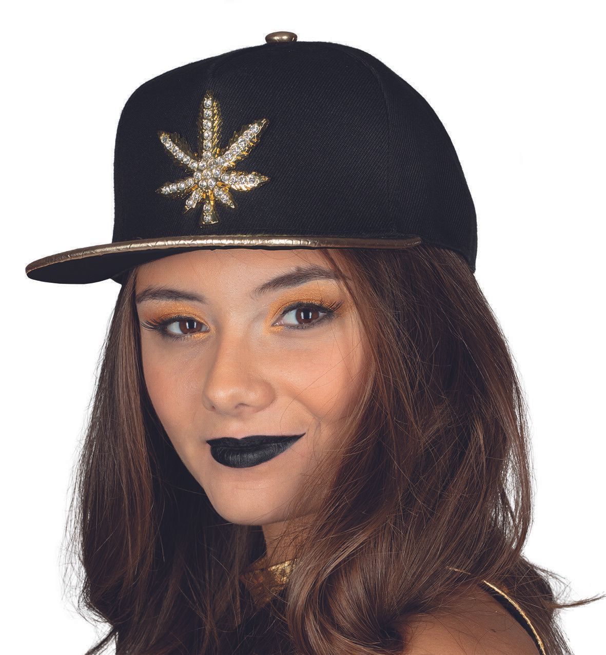 Rubies 4360149 - Cap Hanfblatt, Kappe Schirmkappe Baseballcap Käppi Schwarz Gold